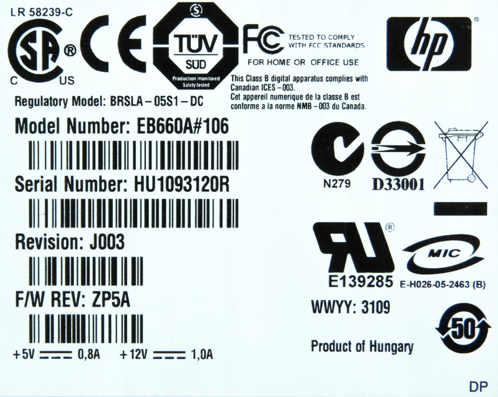 HP EB660A#106 DAT72 36/72GB SCSI 5.25''