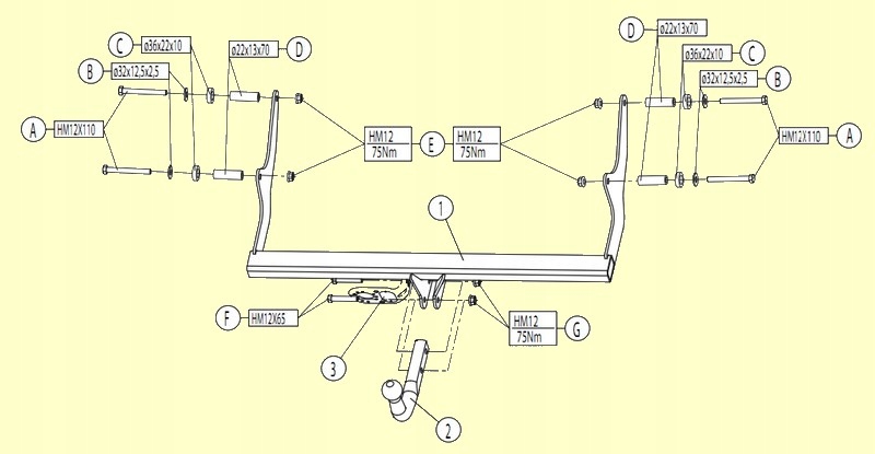 Грузоподъемность буксировочного крюка [кг] Семьдесят пять