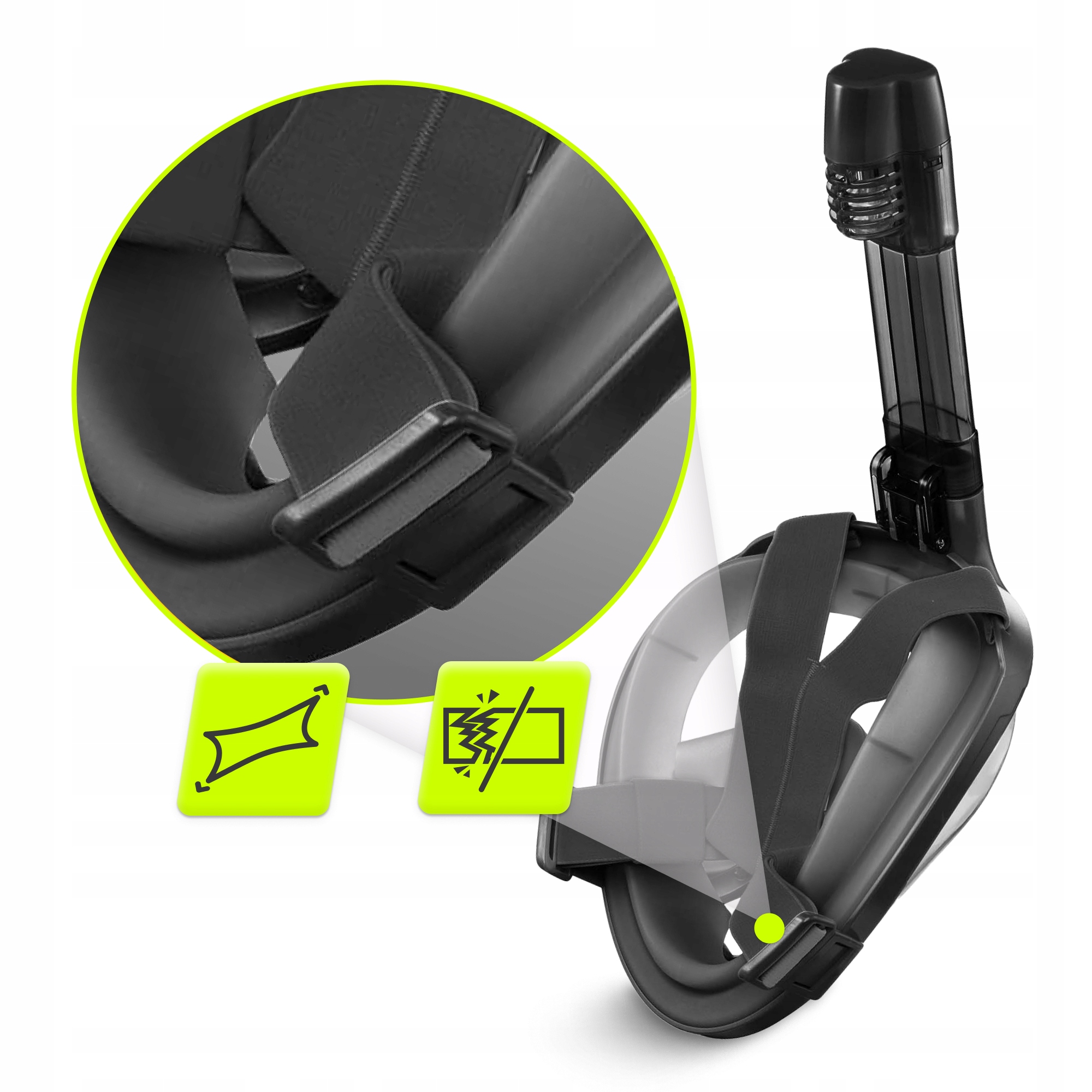 Если вы цените комфорт и практичность, полнолицевая маска для дайвинга обязательно оправдает ваши ожидания. Ей складная трубка облегчает транспортировку, позволяя спрятать маску в сумку, рюкзак или сумочку. Складная трубка уменьшает общую длину маски до 15 см! Дополнительно регулируется ремни-ключевой элемент, обеспечивающий идеальное прилегание подводной маски к вашему лицу взрослого. С их помощью вы можете точно настроить маску для подводного плавания, что предотвращает вода проникает внутрь и обеспечивает комфорт при ношении в течение длительного времени.