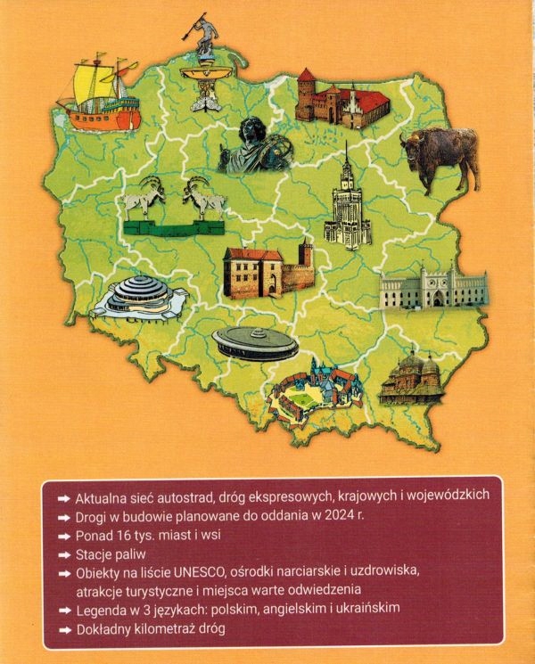 - aktualną sieć autostrad, dróg ekspresowych, krajowych i wojewódzkich,