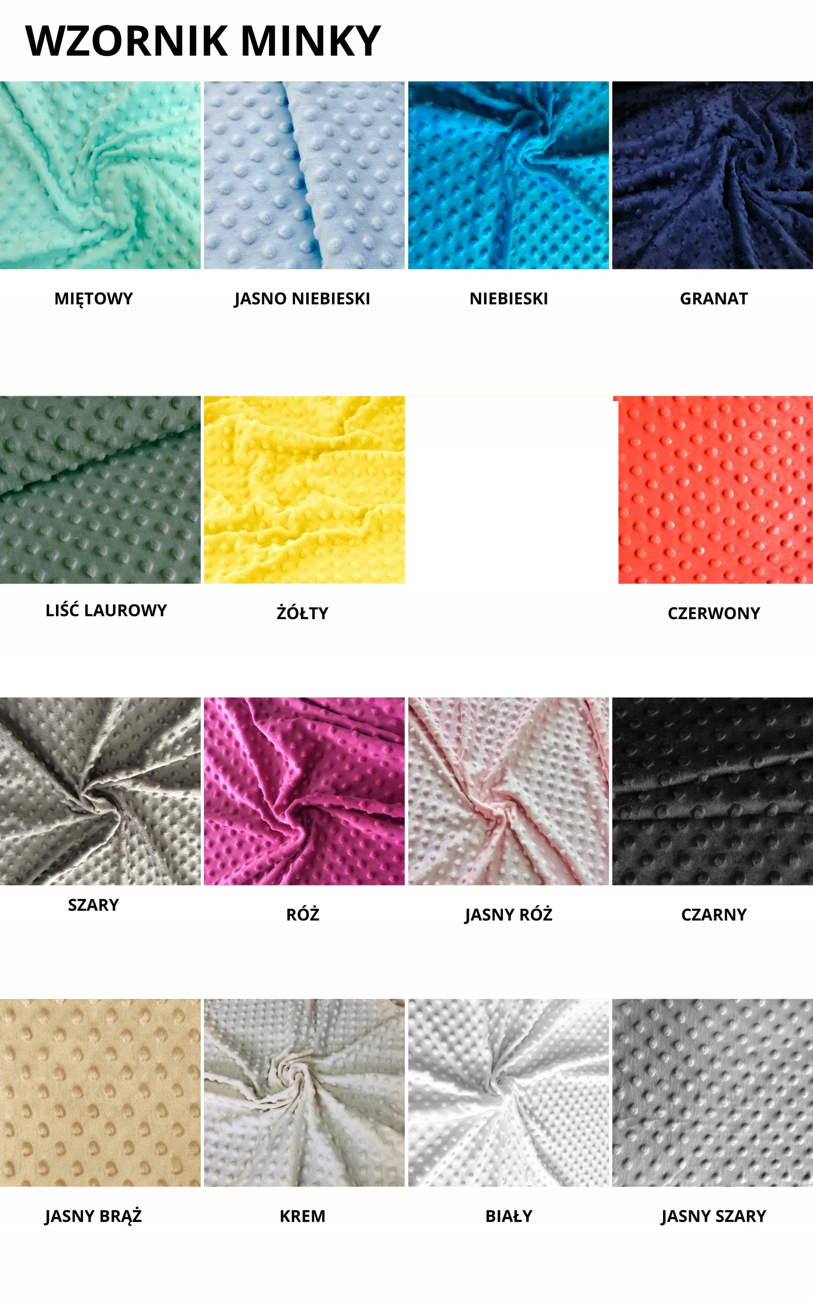 1. Wybierz kolor minky/velvetu z wzorników poniżej.