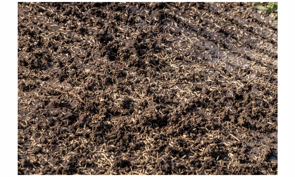 * Крест-накрест техника: сначала высеваем семена в одном направлении, и затем перпендикулярно. Благодаря этому трава будет равномерно прорастать.