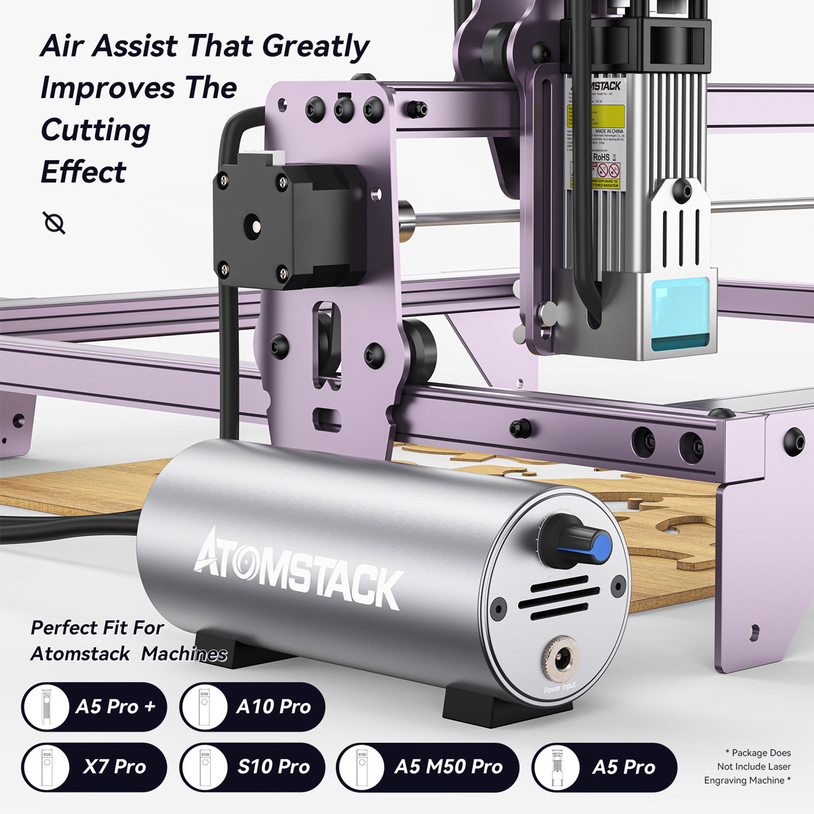 1. Akcesoria wspomagane gazem ATOMSTACK, wyposażone w regulowany przepływ powietrza 10-30 l/min, mogą skutecznie usuwać dym i kurz powstający podczas cięcia/grawerowania laserowego, zapobiegać tłumieniu energii lasera spowodowanemu przez dym i kurz, zapewniać stabilność lasera tnącego energię i pozwól, aby grawerowanie/cięcie działało najlepiej.