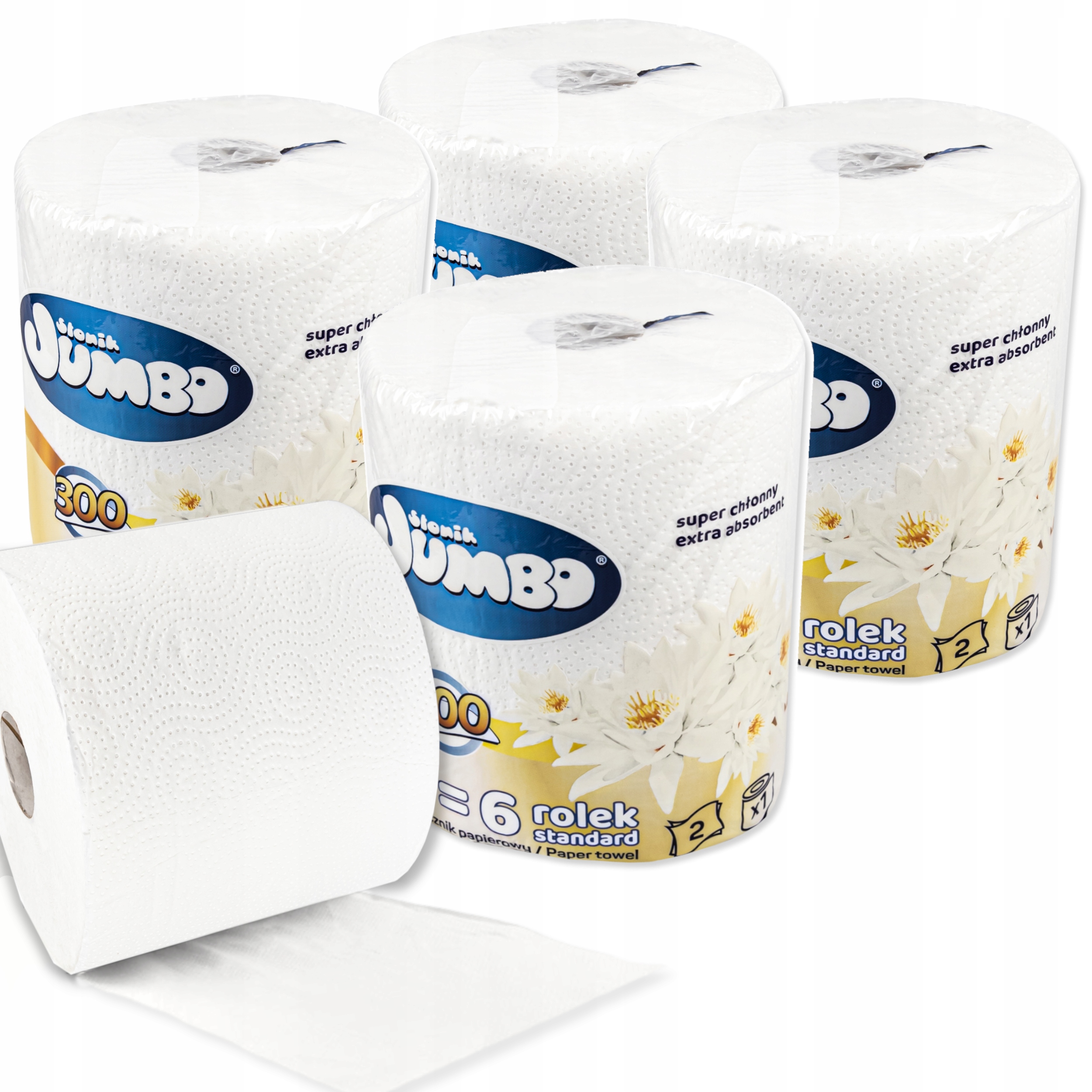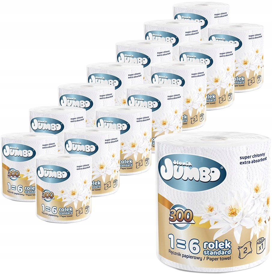 Ręcznik papierowy słonik jumbo 300 listków, dwuwarstwowy biały .