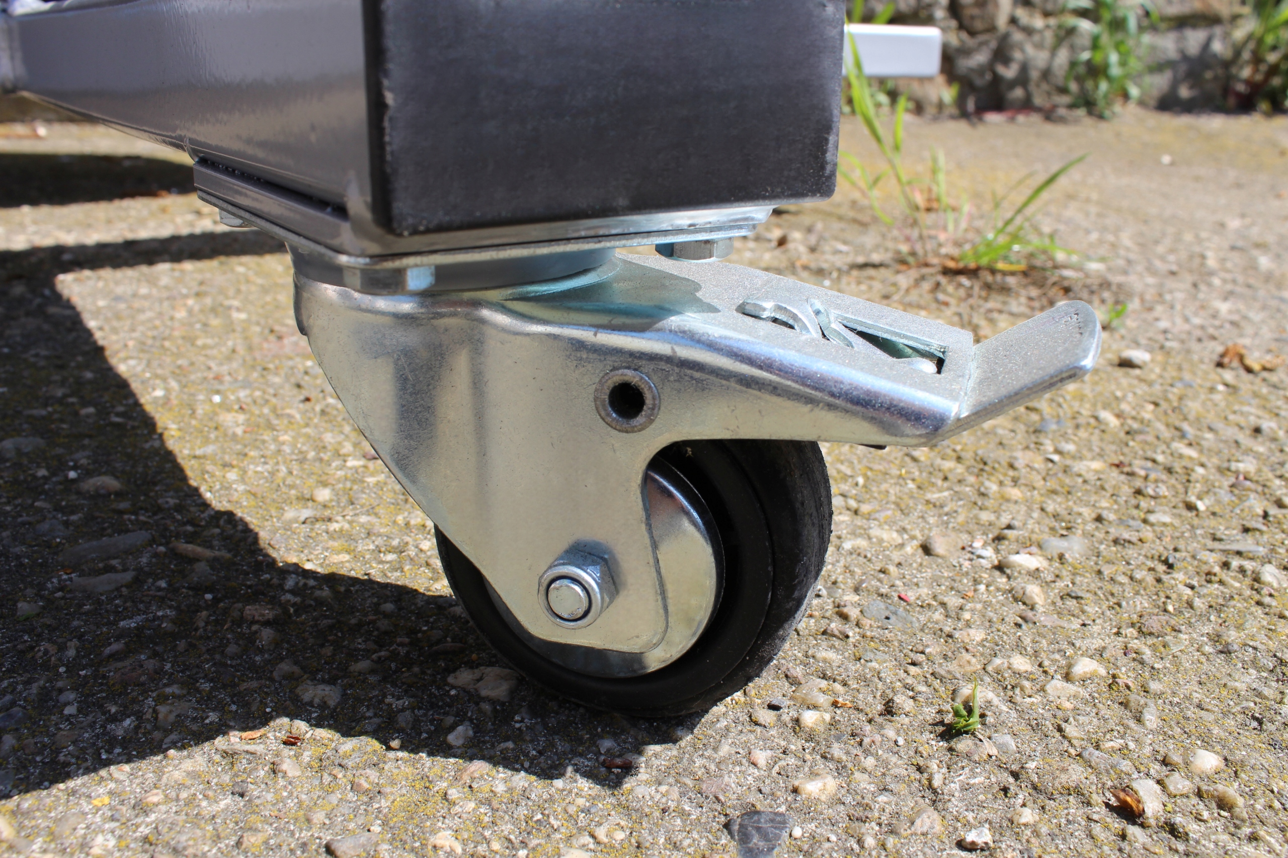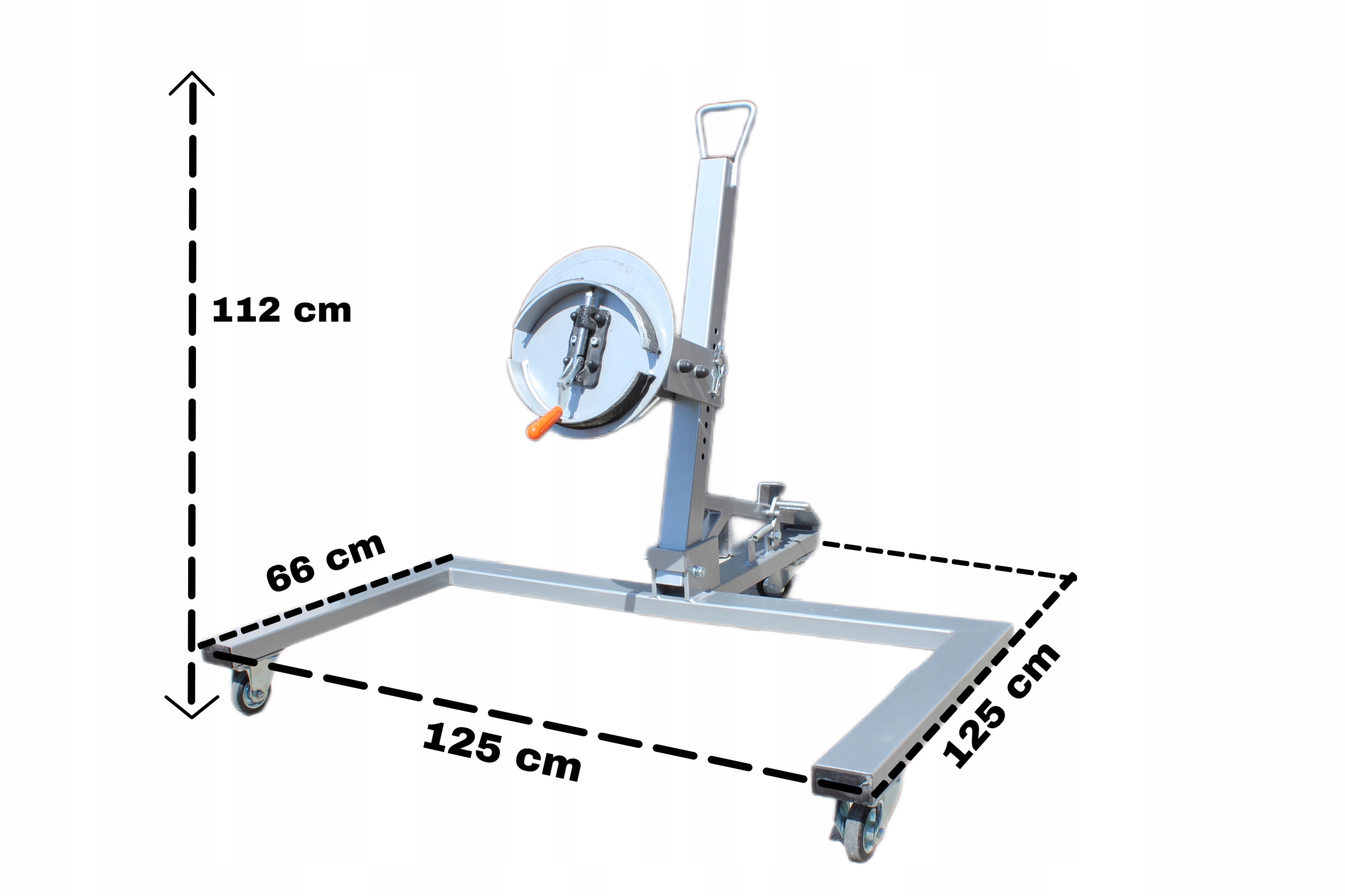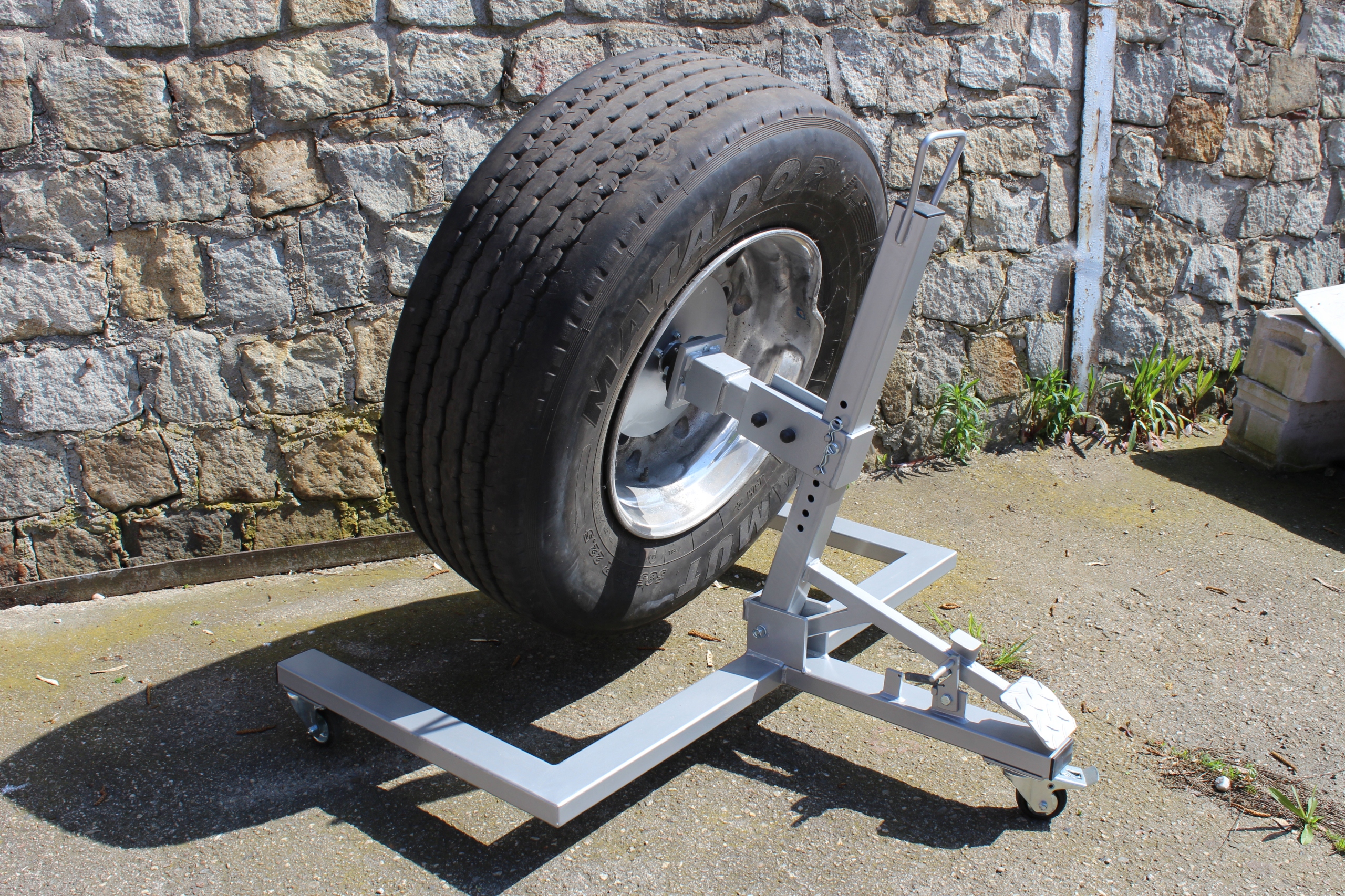 Вилли имеет колеса, что делает его мобильным и легко перемещать. Кроме того, заднее колесо оснащено тормозом, что придает устойчивость в процессе работы. Диск, на который помещается обод, имеет дополнительную защиту в виде механический зажим для защиты от падения шины/обода во время полировки. Легкий система опускания и подъема обода на основе рычага без использования сила.