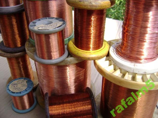 Drut jest miedziany Cu. Produkcja z dawnych lat.Odwijany z cewki transformatora .