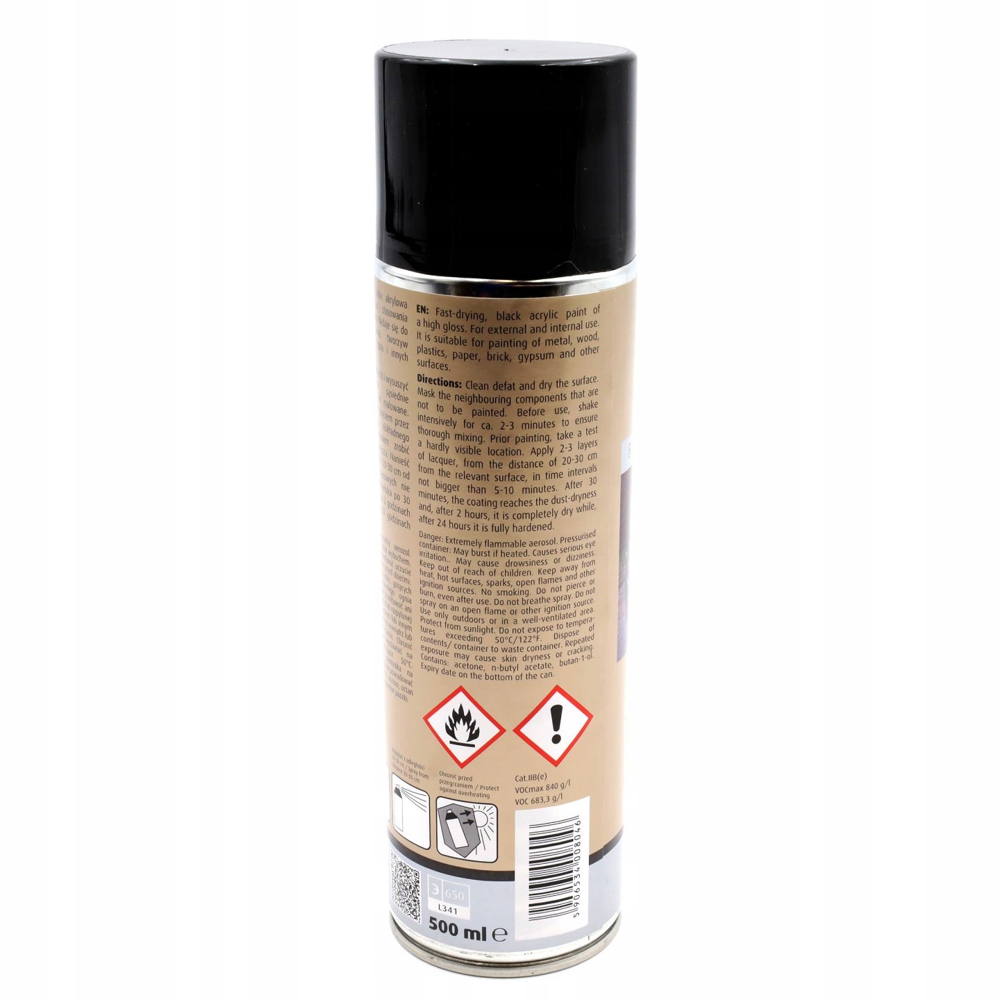 Szybkoschnąca czarna farba o wysokim połysku. Przeznaczona do stosowania wewnątrz i na zewnątrz. Można nią malować drewno, metal, tworzywa sztuczne, papier, gips, cegły i inne.