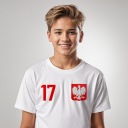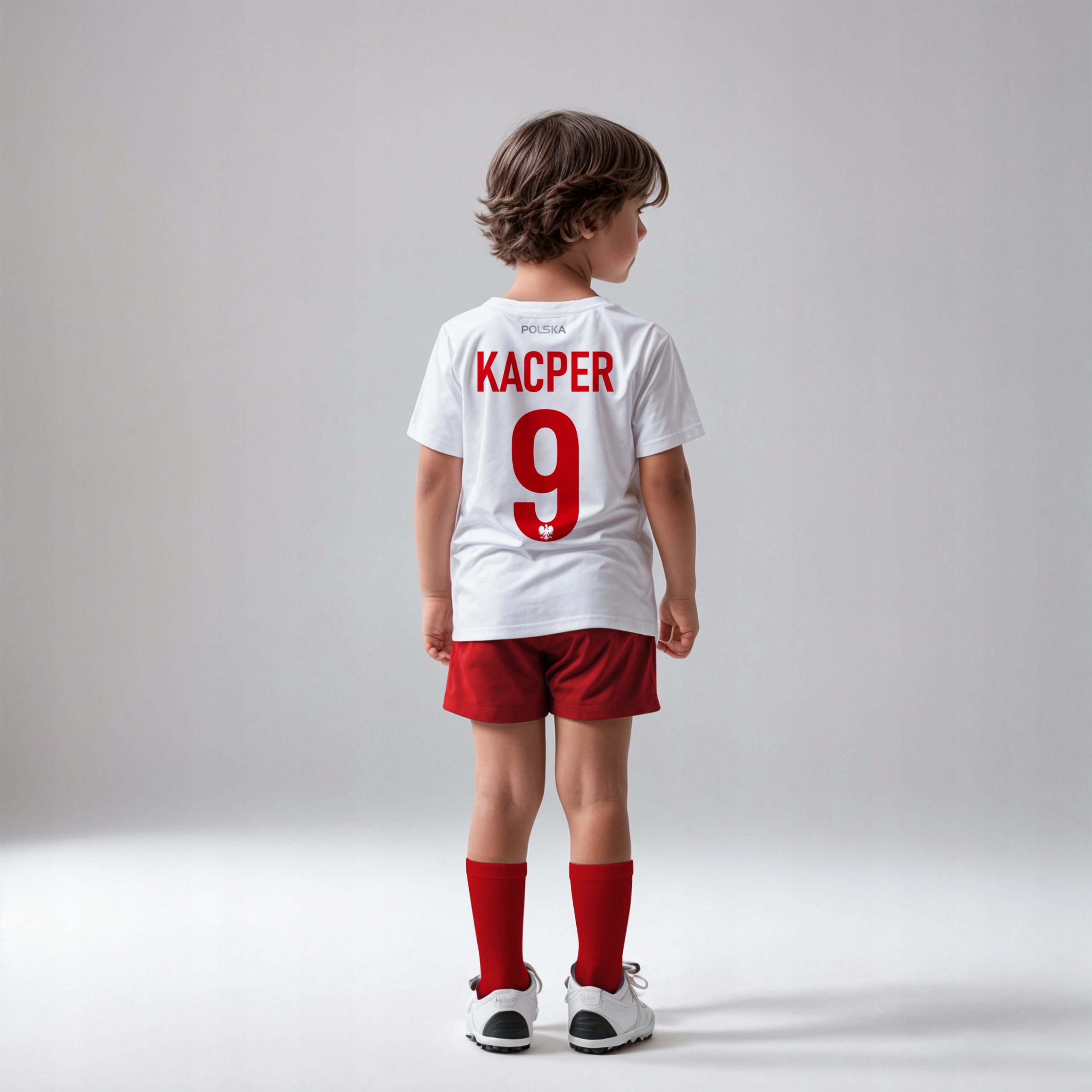 Jak zamówić koszulkę z własnym nadrukiem? To bardzo proste! Jeśli wybrałeś swój rozmiar przejdź do sekcji KUP TERAZ. W polu „Uwagi do zakupu“ wpisz imię oraz numer, który ma się pojawić na twojej koszulce. Przykład: KACPER 9, drugi przykład: Młody kibic 7 (pamiętaj, że wielkość liter ma znaczenie). Dodatkowo wpisz rozmiar skarpetek, wybierz (31/34) lub (35/40). Spodenki dopasowane do wymiarów koszulki !
