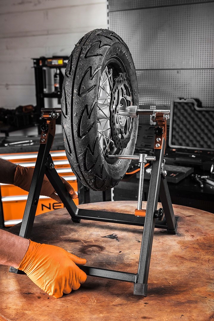 Статическая балансировочная машина для колес мотоцикла 10-590 марки NEO - портативная и складная инструмент весом всего 3,9 кг. Прецизионный инструмент используется для балансировки статического колеса в мотоциклы. Он изготовлен из стали и предлагает возможность работы с колесом с максимальным диаметром 21” и диапазон диаметра оси от 14 до 28 мм. Балансировочный станок марки NEO рекомендуется для мастерских и автомобильные заводы.