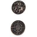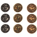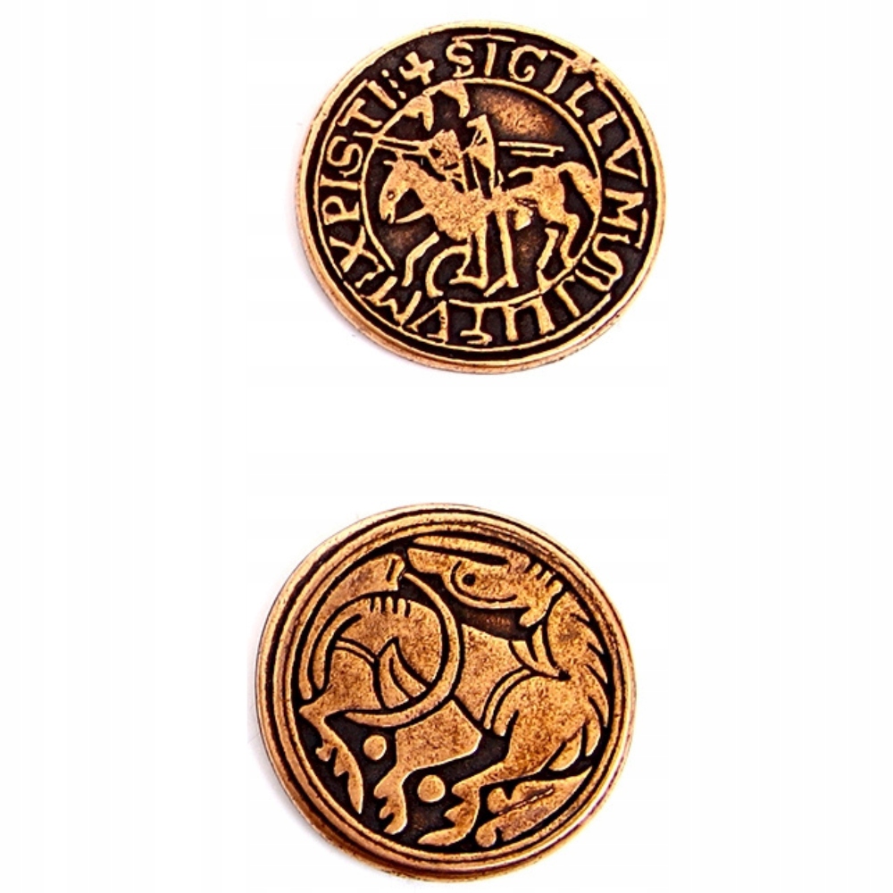Wykonany ze stopów cynku zestaw 9 masywnych, ale precyzyjnie zdobionych monet, które dostaliśmy od rodziców, kiedy opuszczaliśmy nasze domy i wyruszaliśmy na wyprawy krzyżowe. Co za czasy, co za obyczaje. Uprawiasz sobie pole rzepy za swoim domem. Robisz to trzy dni w tygodniu, bo w pozostałe trzy musisz odrabiać pańszczyznę dla lorda tyrana z okolicznego zamku i jego świty rycerzy, którym bliżej do najemnych prostaków niźli cnych obrońców. W niedzielę, dzień Pański, można odpoczywać – gdy już oddasz daninę z ocynkowanych, metalowych monet kapłanom. Do tego musisz pamiętać o umartwianiu ciała, spowiedzi i zapłaty za odpust czy święcenie pola, by obfite plony zebrać. A nigdy potem nie są obfite. Obrabiasz pole i modlisz się, by cząstka pracy na swoim wystarczyła do przeżycia srogiej zimy w drewnianej, rozpadającej się chatce. Śmierć towarzyszy Ci na każdym kroku. Umierają noworodki, z głodu, zimna i chorób. Umierają rosłe chłopy. Od przepracowania, zakażeń i bólu. Kobiety umierają w połogu. Starcy umierają sami z siebie. Memento mori. Dzwon bije na modły i na trwogę. A jak pan wypowiada wojnę, trzeba iść się bić albo uciekać przed najeźdźcami, którzy spalą Ci chatę i pole, a nie daj Boże, gdy masz żonę abo córę. Takie to czasy, takie to obyczaje.