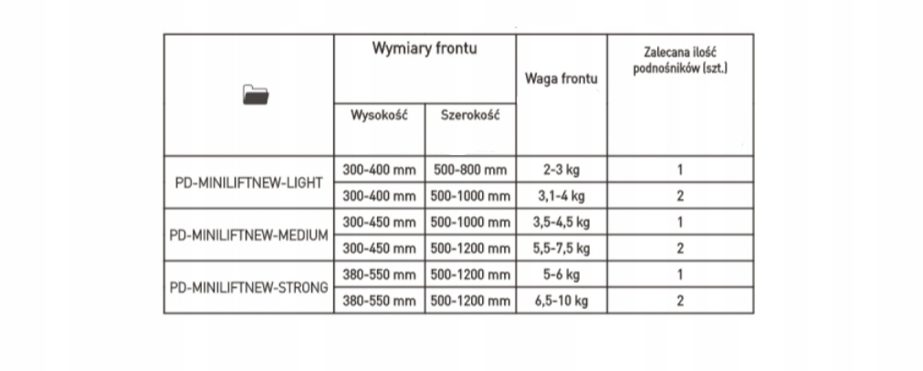 Propozycja dla osób szukających dobrej jakości w rozsądnej cenie. Podnośnik meblowy GTV-MINILIFT to świetne rozwiązanie dla mniejszych frontów kuchennych. Jest zamiennikiem dla o wiele droższego podnośnika HK-XS producenta BLUM.