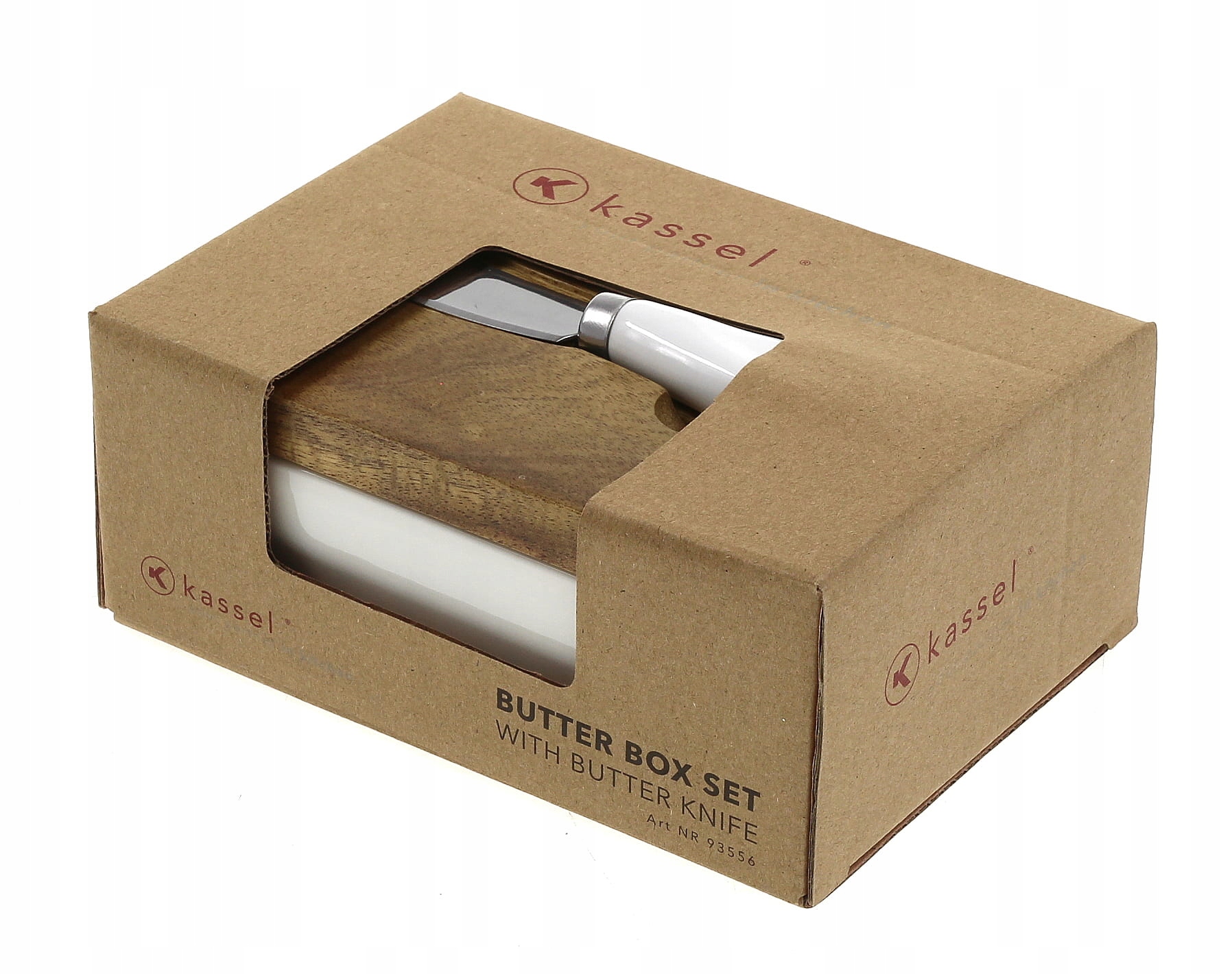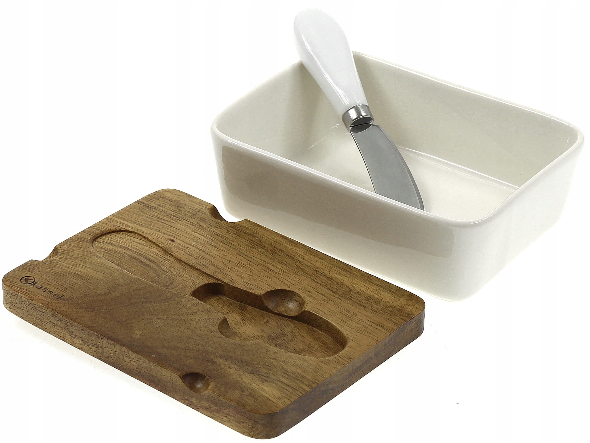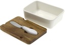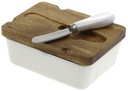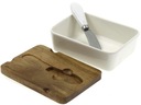 Porcelanowe naczynie na masło z akacjową pokrywką i nożykiem