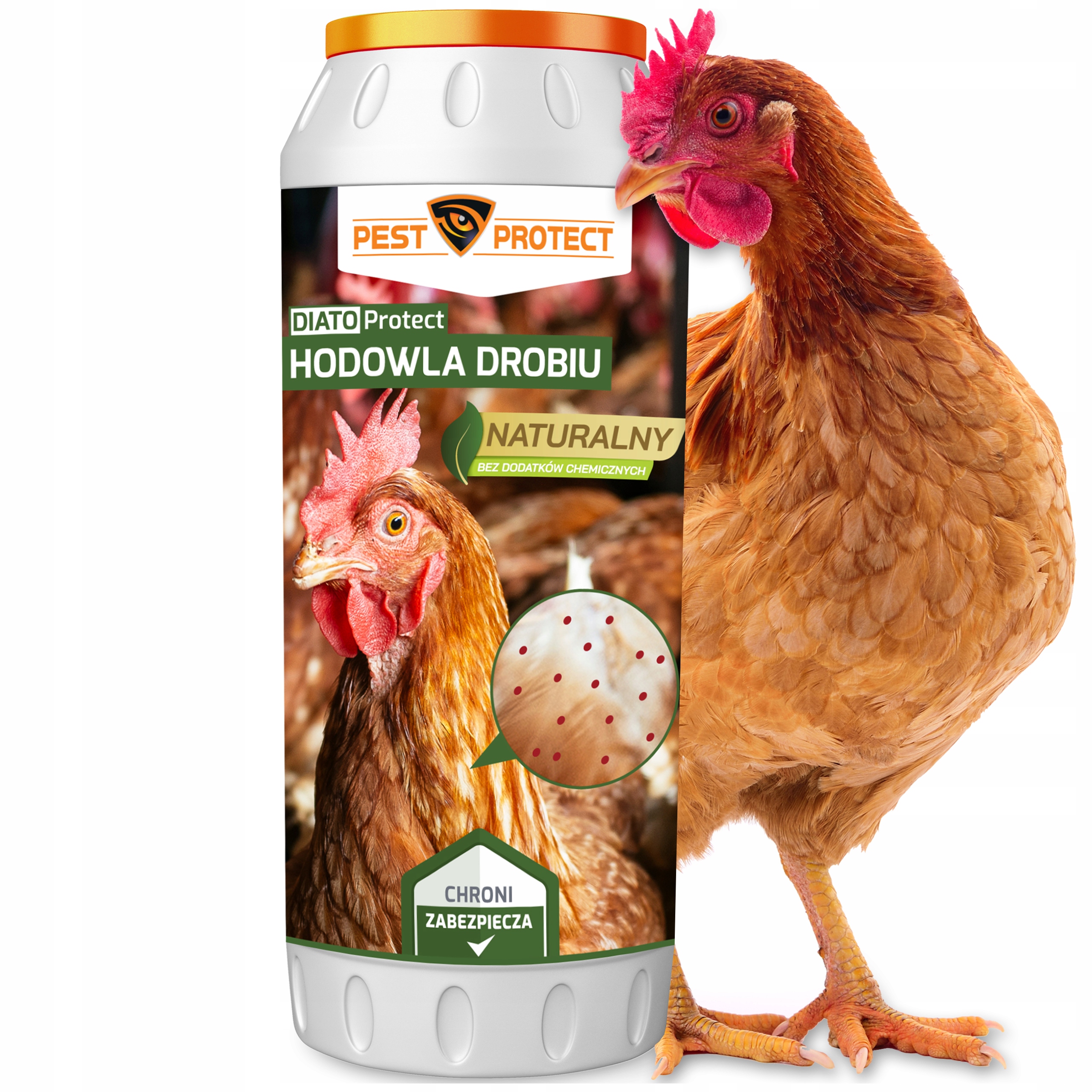 DIATOProtect PEST PROTECT to produkt naturalny, bezpieczny dla zwierząt co umożliwia jego stosowanie przy ptactwie jak i bezpośrednio na nim. Działanie bezpośrednio na kurach odbywa się poprzez metodę"