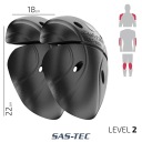 SC-1/81 to protektory 3D wykonane z miękkiej elastycznej pianki Visco o doskonałych wartościach niwelujących wstrząsy, siła resztkowa poniżej 15kN (norma: poziom 2:20kN). Otwory wentylacyjne sprawiają, że idealnie nadaje się do oddychającej odzieży tekstylnej.
