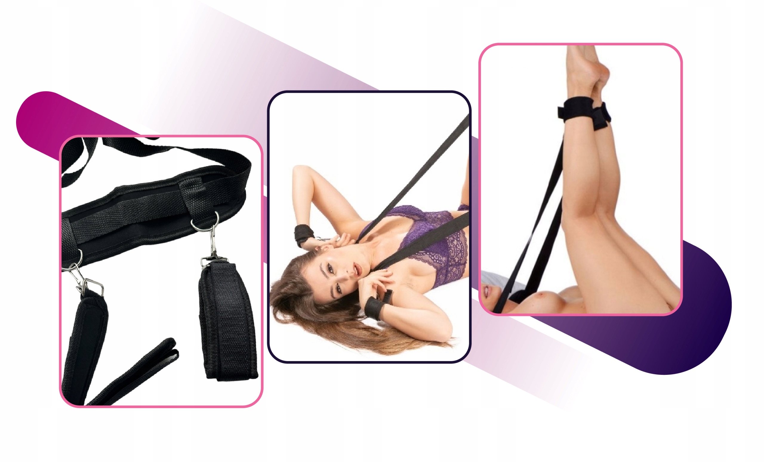 ❤️️ Zestaw zawiera pasy z karabińczykami na końcach do mocowania, oraz kajdanki na nogi i nadgarstki. Pasy umieszcza się pod materacem i paskiem łączącym łączy ze sobą.