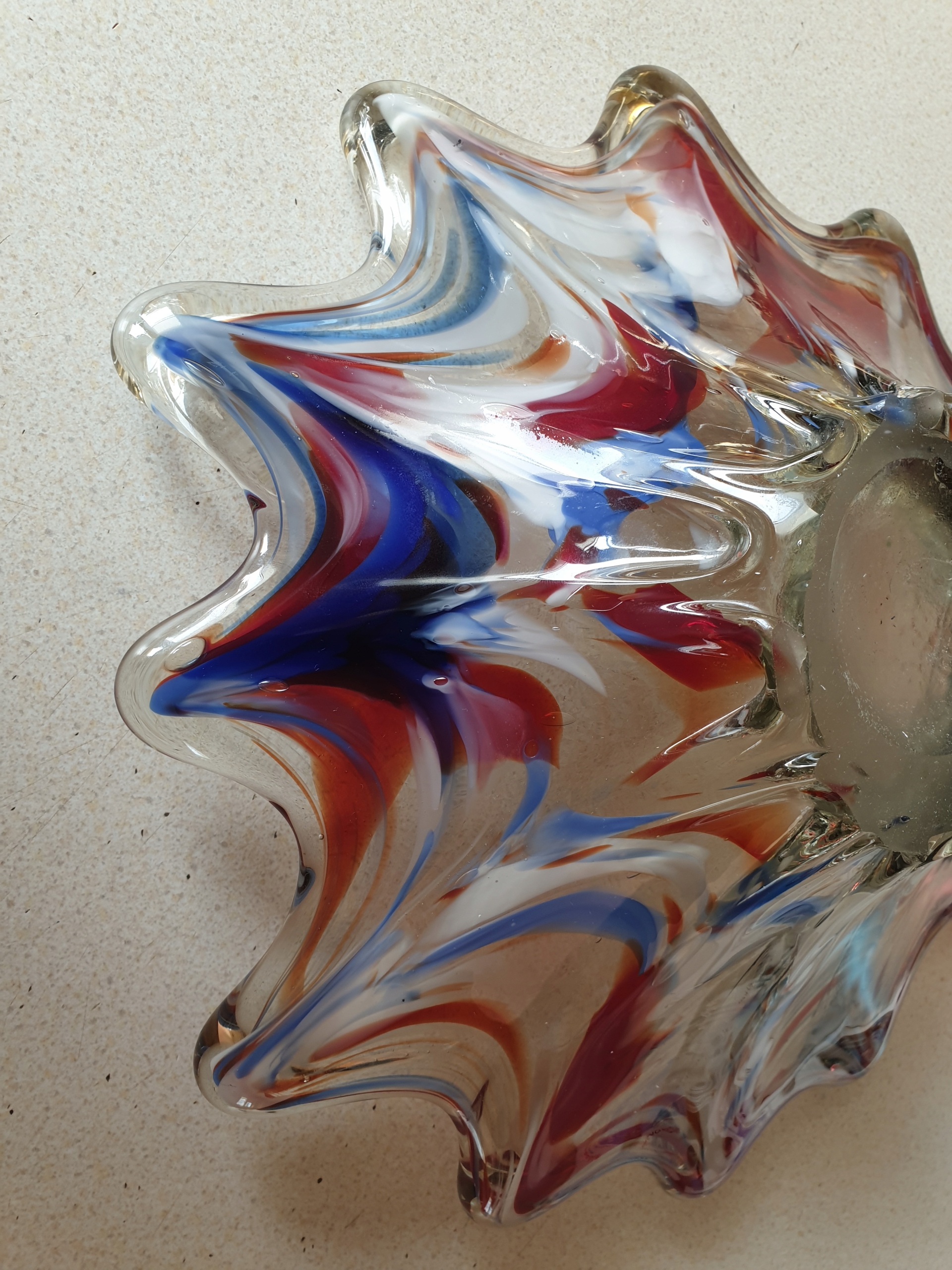 Mam do sprzedania ciekawą szklaną paterę o unikatowej formie. Patera prawdopodobnie została stworzona w HSG Ząbkowice w czasach PRL.
