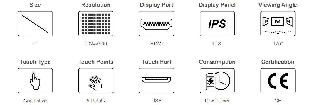 7 дюймов - я не знаю. Дисплей имеет разъем HDMI, что позволяет подключать его к таким чипам, как: Raspberry Pi, BB Black, Banana Pi / Banana Pro и другие мини-ПК