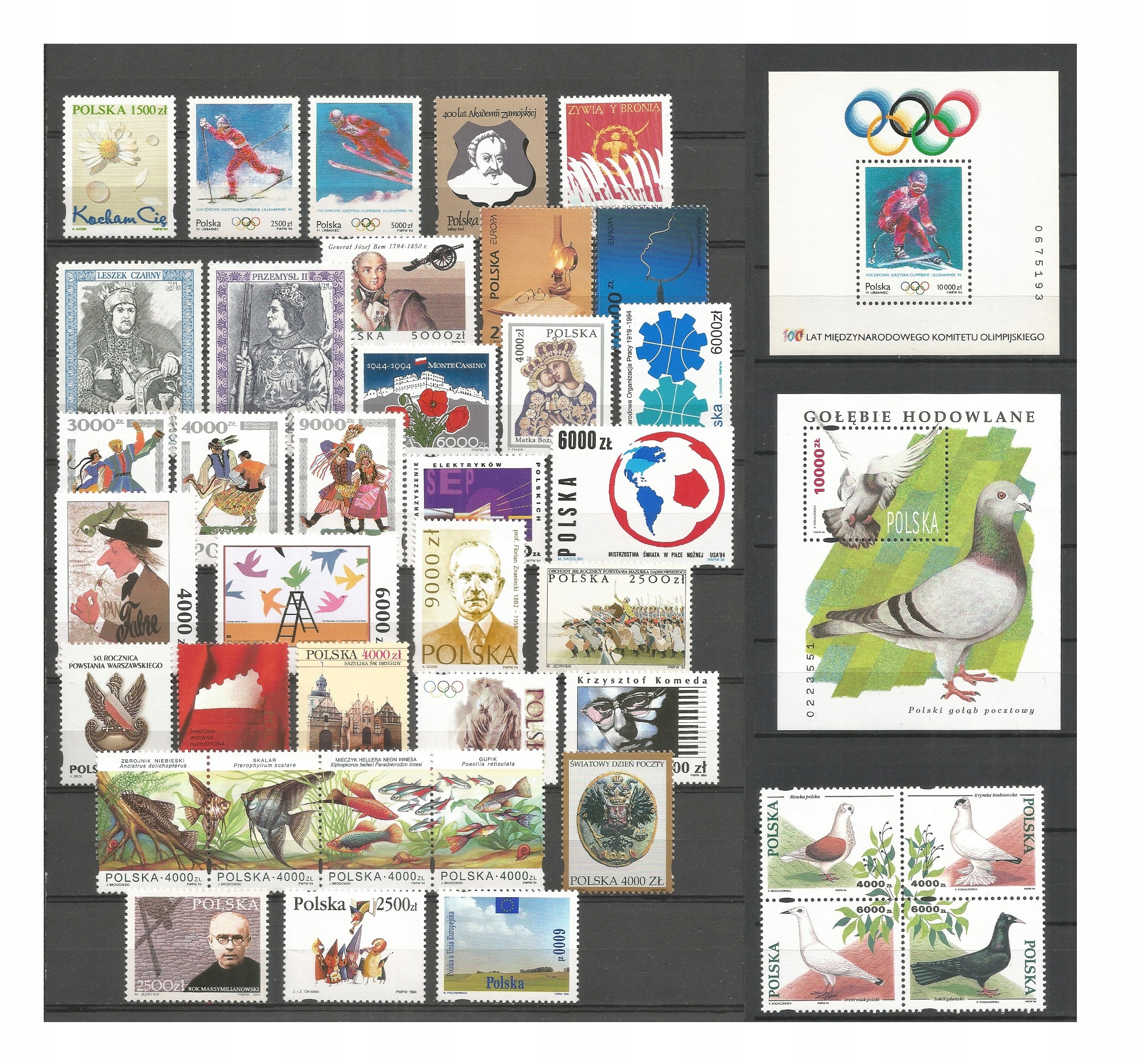 UWAGA - ze względu na zastosowany klej na znaczkach mogą być nieduże zabrudzenia od klasera. Taki klej stosowano w latach 90-tych, że się lepi do klaserów.