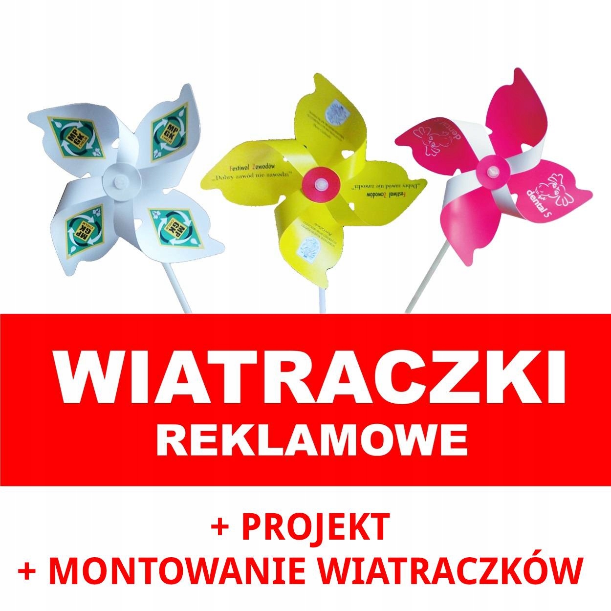 WIATRACZKI REKLAMOWE - 50 SZT z PEŁNO-KOLOROWYM DWUSTRONNYM PROJEKTEM!