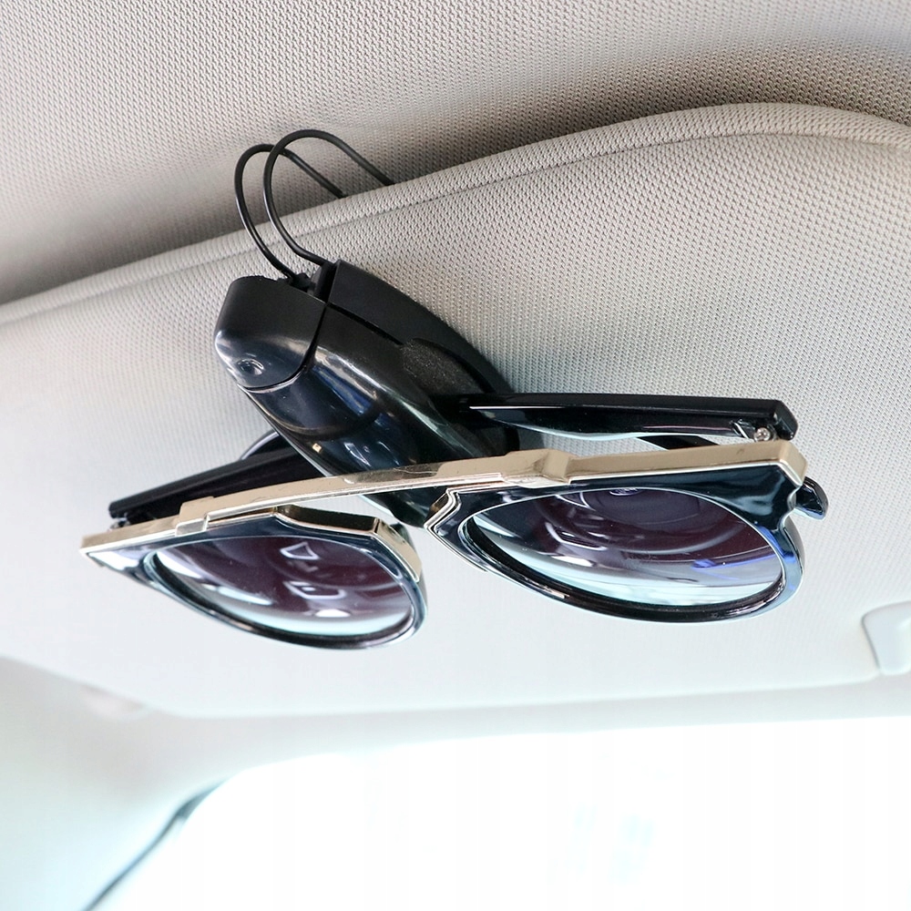 Uchwyt samochodowy do okularów który pozwala przymocować okulary do daszka przeciwsłonecznego.