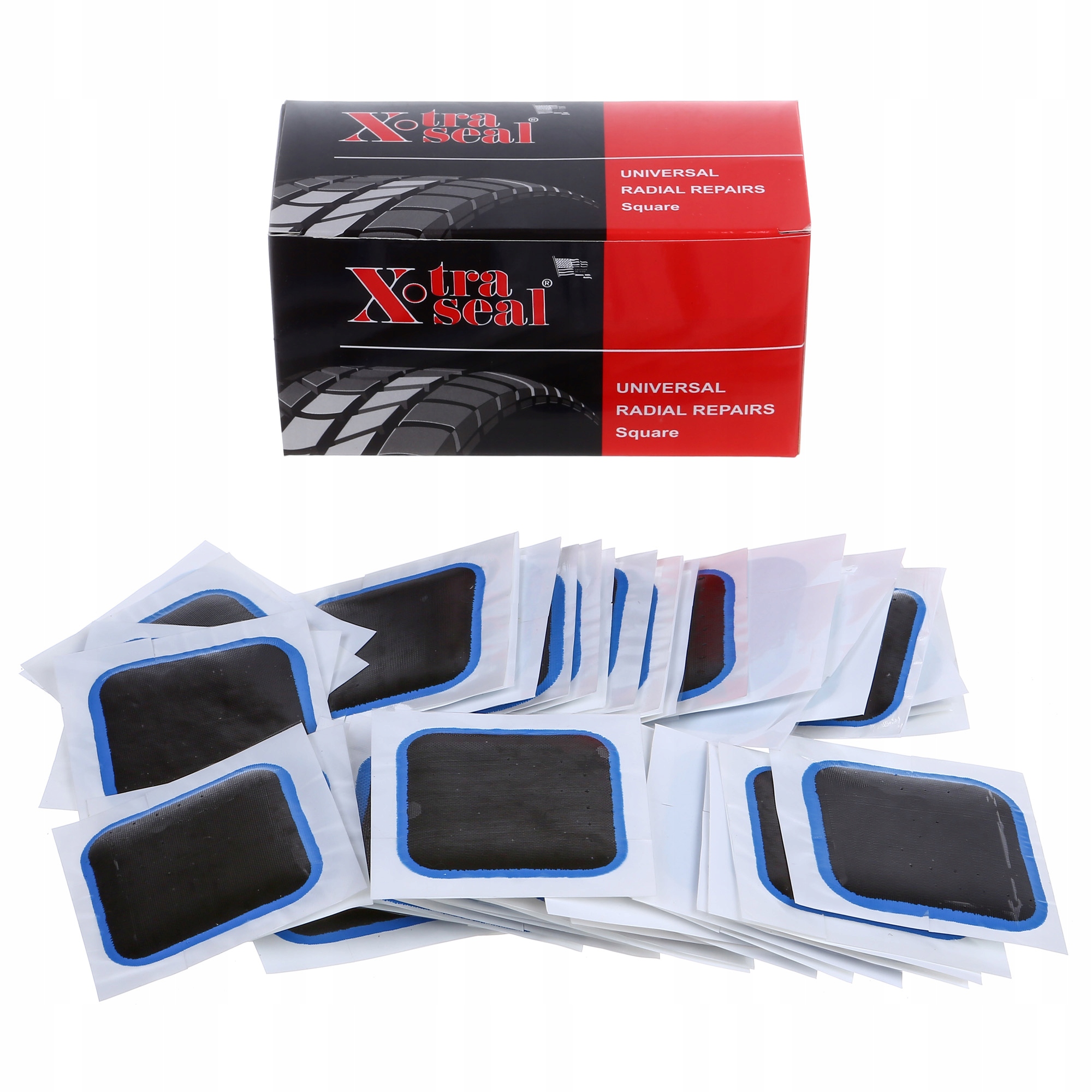 Łatki uniwersalne amerykańskiej firmy X-tra Seal są wykonane ze wzmocnionej czarnej gumy, położonej na wysokiej jakości niebieskiej gumie aktywnej, uformowane na podłożu z tworzywa "mylar", naciętego dla łatwiejszego zdejmowania.