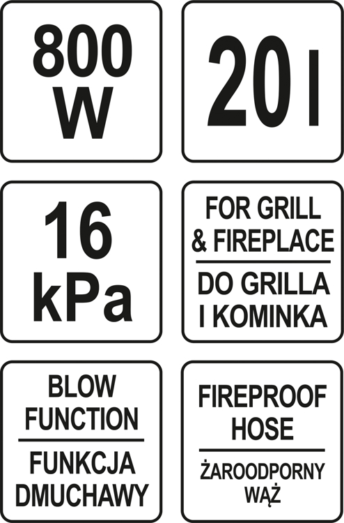 Пылесос для золы из камина или барбекю, двигатель мощностью 800 ВТ (макс. 1000 ВТ), отрицательное давление: 16kPa.