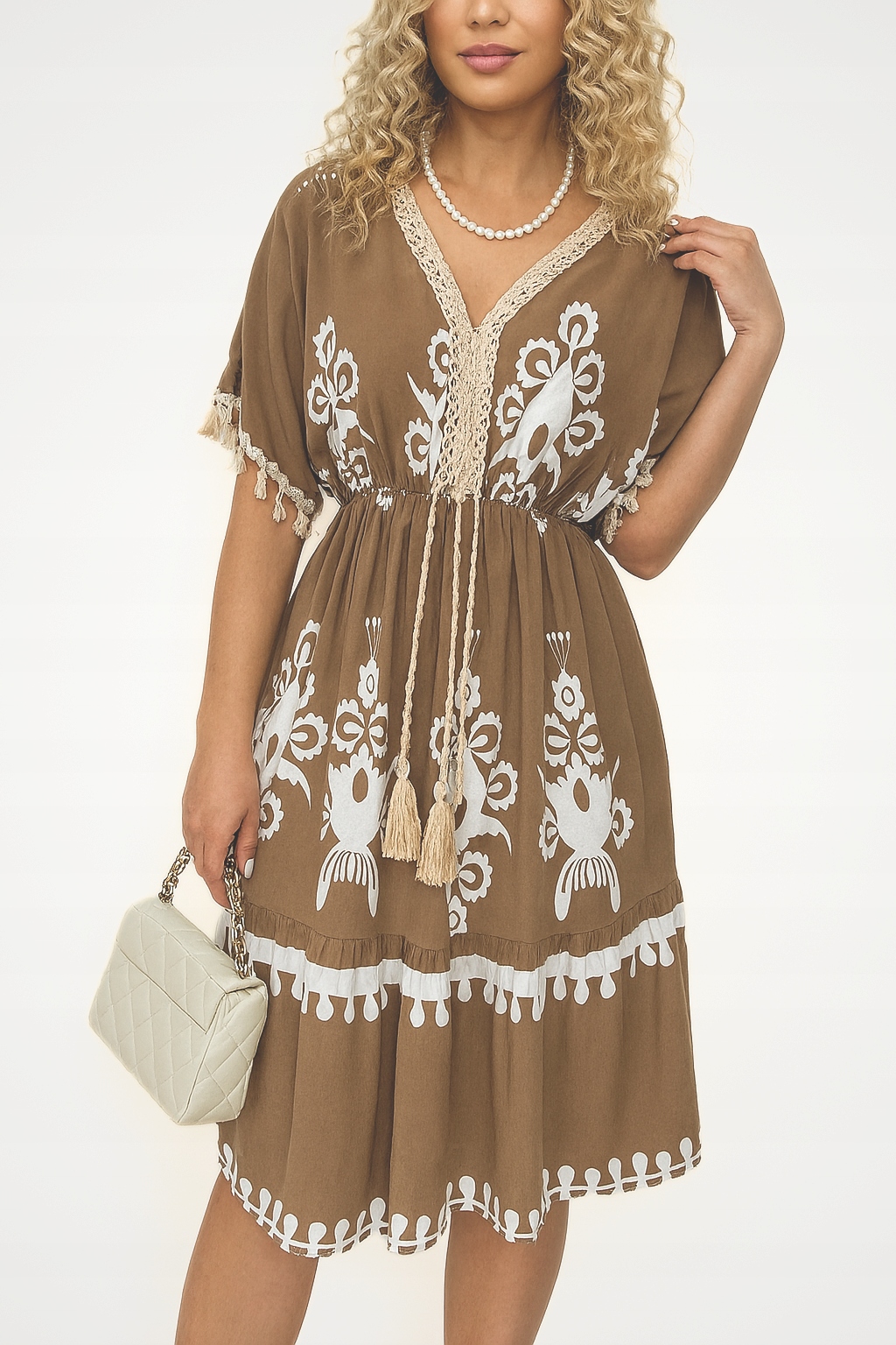 Wysokiej jakości materiałów, gwarantuje doskonały komfort noszenia, trwałość i przewiewność w lato. W połączeniu z gumką i falbaną, podkreśla kobiece kształty i dodaje stylowego charakteru.