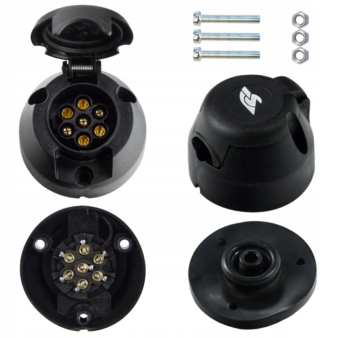Прочный и прочный 7-Полюсный (польский стандарт) электрический разъем буксировочного крюка, спрятанный в пластиковый корпус с пружинным клапаном. Качество бренда STEINHOF.
