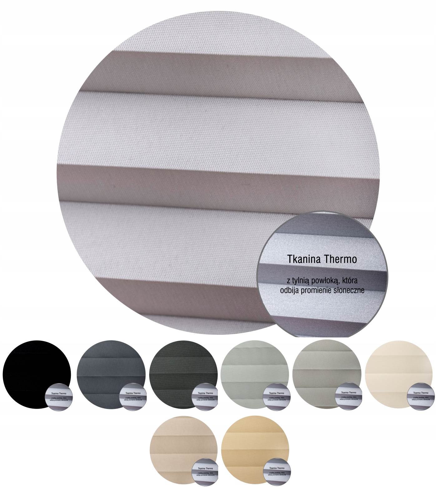 Plisy optymalnie zaciemniają, a zastosowanie powłoki TERMO powoduje, że odbija ona promienie słoneczne i chroni wnętrze przed nadmiernym nagrzaniem się.
