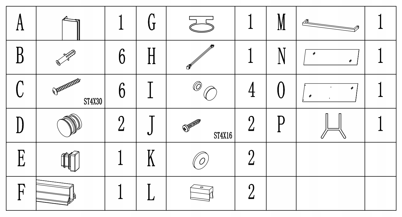 ☛ Czy zestaw zawiera wszystkie elementy potrzebne do montażu? - Tak, w każdym zestawie jest szyba, listwa mocująca do ściany, wspornik górny, dwie uszczelki oraz zestaw śrub i kołków. Opcjonalnie również wieszak na ręcznik (przy wybraniu modelu z wieszakiem). Załączmy również dokładną instrukcję montażu.