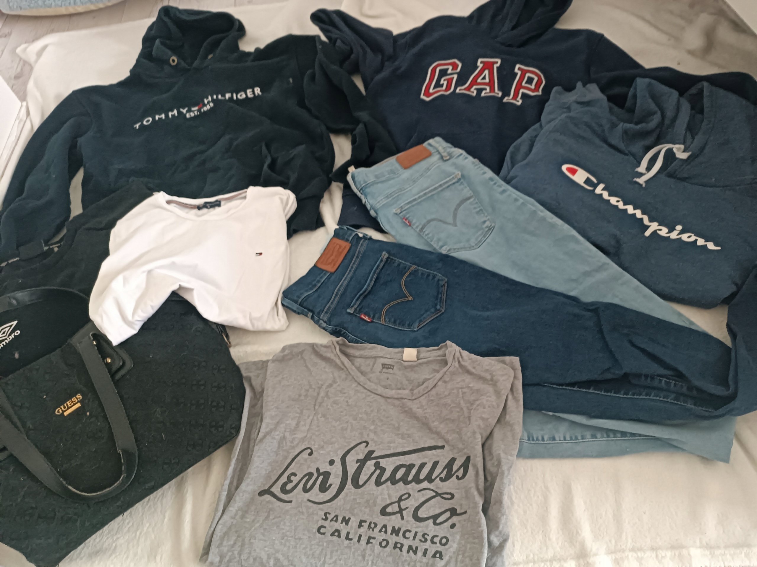 Odzież hurt 20 kg , zdjęcia jednego z pakietów, pakiety wysyłane losowo . Odzież 70% damska, 20% męska z dziecięcą, 10% markowe buty oraz dodatki. Odzież używana zdarzają się nowe różne marki mix odzieży mix Marek. Odzież modna z bieżących sezonów. Dużo marek !