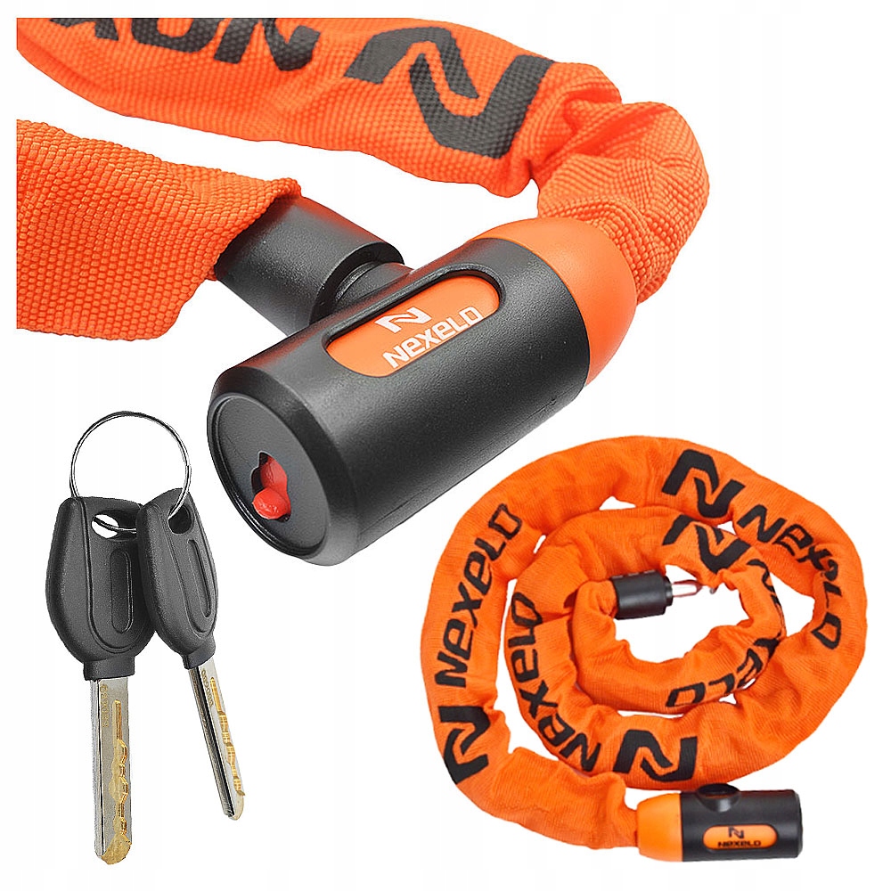 Закаленный L анцепь длиной 1200 мм и толщиной 6 мм он был построен из закаленных звеньев, а затем покрыт прочным и стойким от атмосферных воздействий, безопасный материал, который эффективно защищает велосипед от царапин.