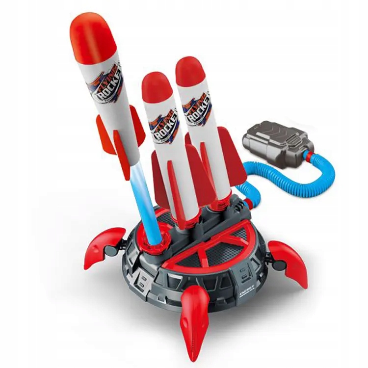 Wystarczy postawić podest na twardej powierzchni, ustawić planowany kąt lotu rakiety i nacisnąć na pompkę-poduszkę. Wytworzone ciśnienie spowoduje, że rakieta poleci wysoko w górę. Im mocniej naciśniesz tym wyżej poszybuje. Urządź zawody, która rakieta poleci dalej i wyżej, baw się i skacz. Gra zachęca do wspólnej zabawy i ruchu na świeżym powietrzu. Rakiety wykonane są z miękkiej i bezpiecznej pianki, która nie zagraża zdrowiu twojego dziecka.