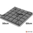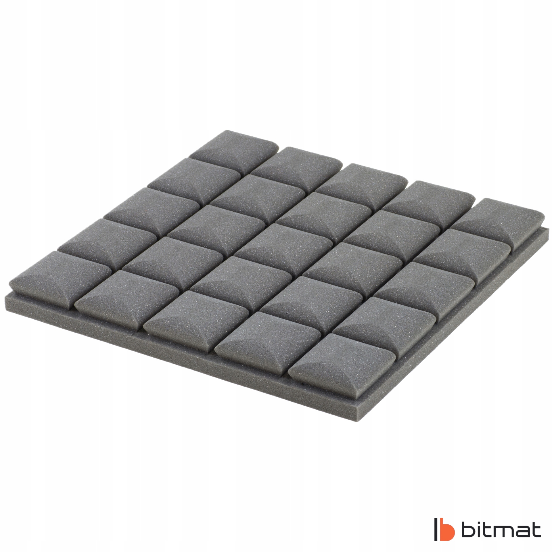 Акустическая пена с выпуклым кубом марки Bitmat также называется акустическая панель выполнена из вспененного полиуретана, а ее структура-открытая клетки. Использование правильных конусов отлично подходит для студий и комнат музыки / озвучивания кабины, как это улучшает разборчивость речи и вокала. Это оптимальное использование, которое при относительно низкой стоимости позволяет предотвратить реверберацию, улучшает качество звука в жилых и рабочих помещениях, а также создает современный дизайн.