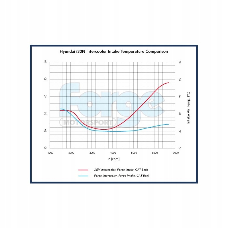 Ten intercooler w połączeniu z naszym wlotem i wysokiej jakości układem wydechowym typu cat back na rynku wtórnym zapewnią niezrównane poziomy wydajności. Końcowe wyniki testów były bardzo godne uwagi - intercooler Forge Motorsport nie tylko zmniejszył IATS o połowę, ale także znacznie zwiększył moc i moment obrotowy w stosunku do deklarowanych przez Hyundai wartości 275 KM i 278 funtów na stopę, co daje niezwykle imponujące 307 KM i 347 funtów na stopę