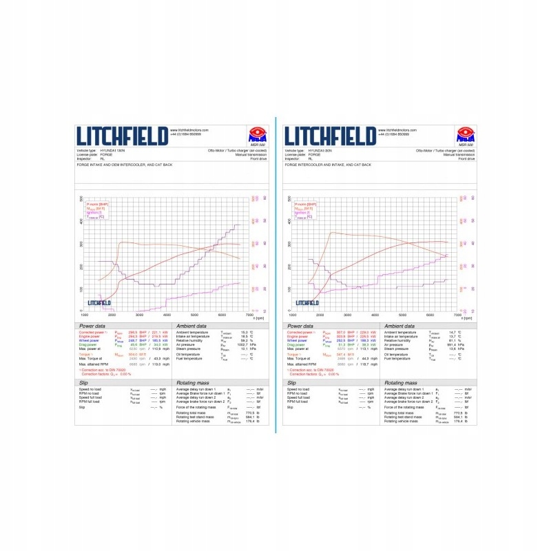 Jak widać na poniższych wynikach hamowni, moc wzrosła z 358 KM z fabrycznym intercoolerem i wlotem do 381,2 KM i 371,4 Nm momentu obrotowego z zainstalowanymi częściami Forge Motorsport.