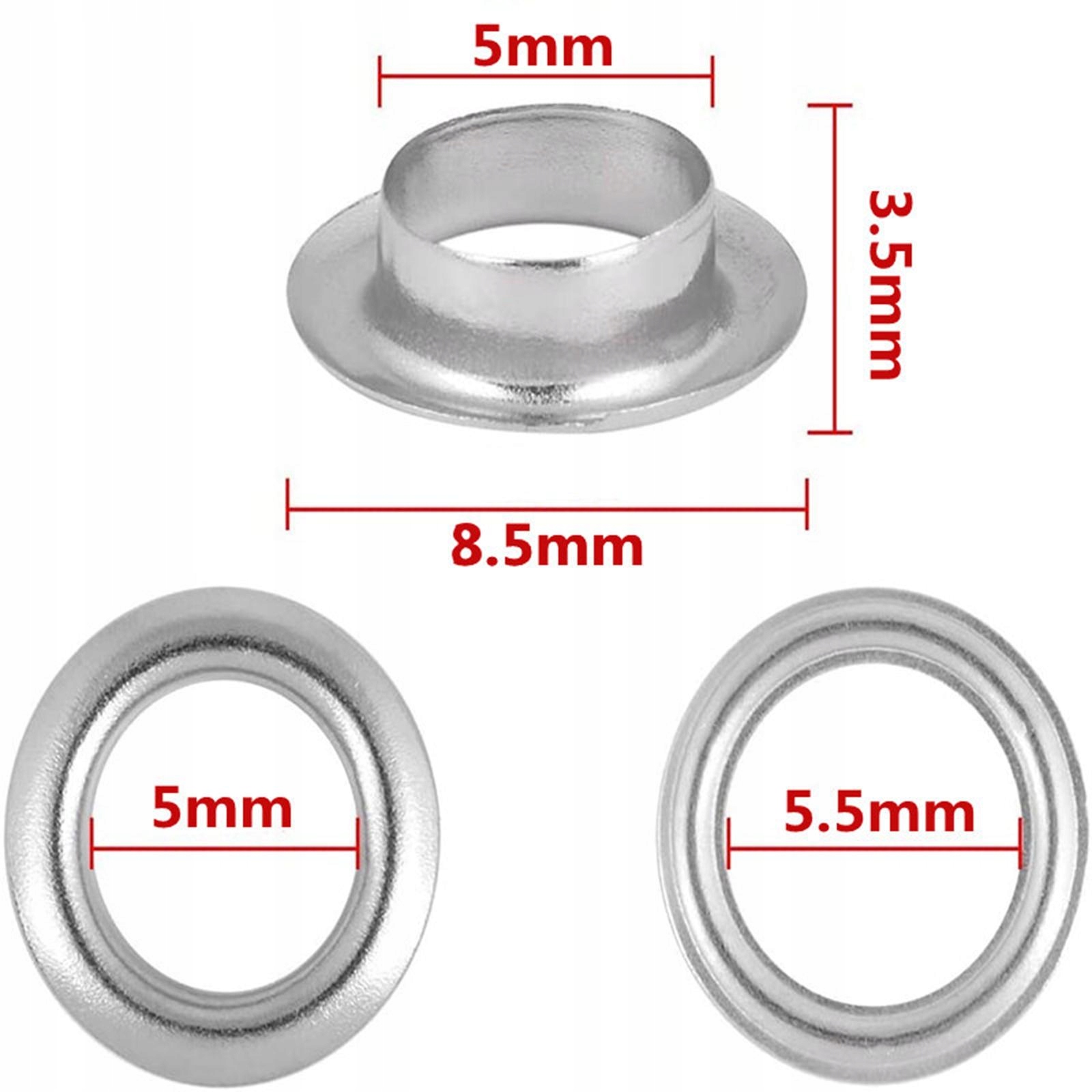 Rozmiar: Wewnętrzna średnica oka powietrznego wynosi 5 mm/0.20 cala, zewnętrzna średnica to 8.5 mm/0.33 cala, a wysokość to 3.5 mm/0.14 cala.