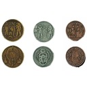 W tej kategorii znajdziesz monety metalowe związane z konkretnymi motywami lub tytułami gier. Zestawy zawierają produkty imitujące złoto (pokryte warstwą mosiądzu), srebro (warstwą niklu) lub miedź (warstwą miedzi). Ich wzory nawiązują do gier postapo, fantasy, steampunkowych, utrzymanych w klimacie średniowiecza, starożytności, kosmosu, oraz powieści Lovecrafta.