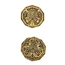 Wykonany ze stopów cynku zestaw 9 cudownych, ciężkich monet, które otrzymaliśmy w darach od siedmiu krasnoludzkich władców z ich kamiennych pałaców.