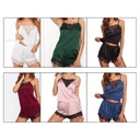 Damska damska koronkowa satynowa bielizna nocna Cami Top i szorty piżama