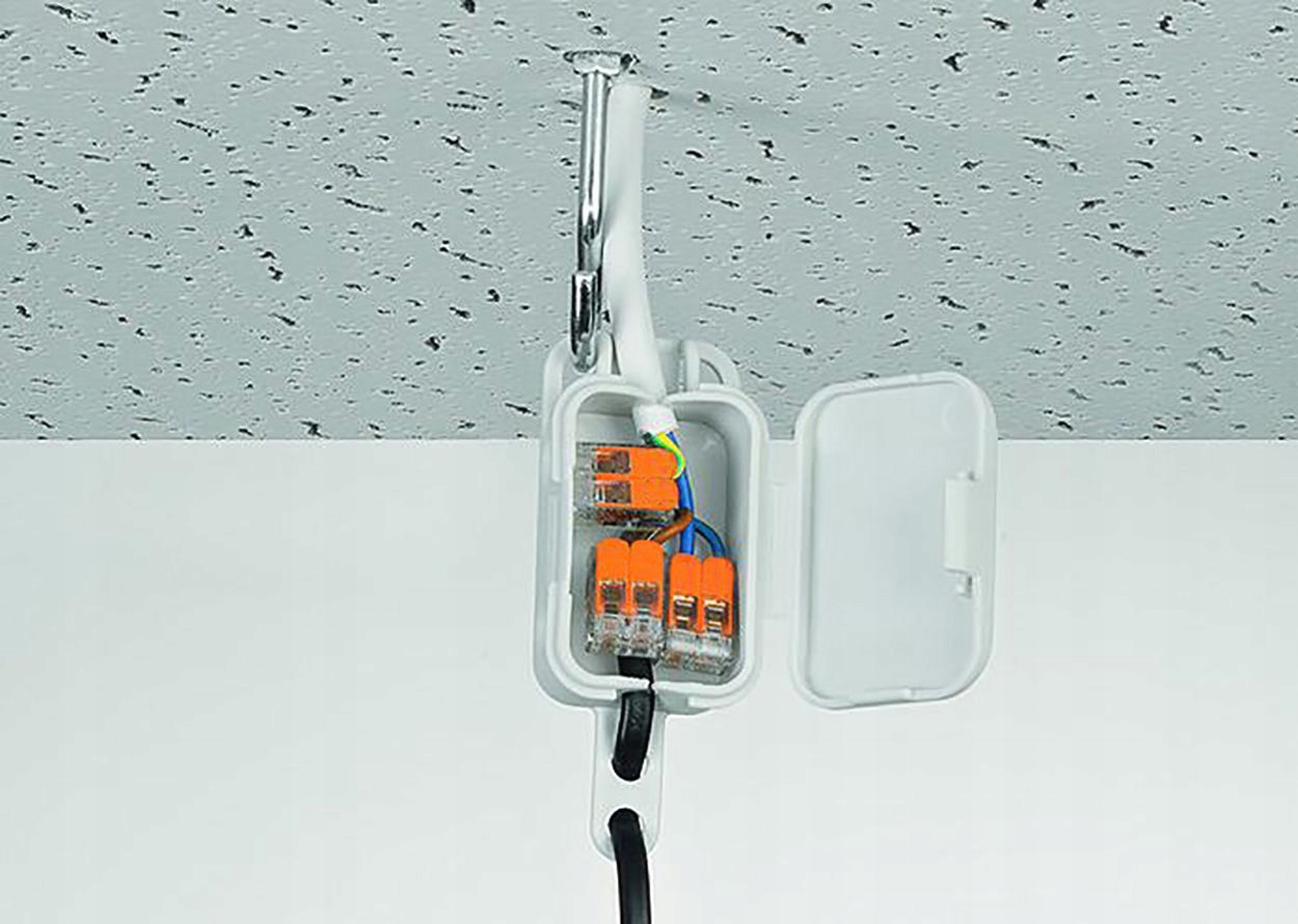 Podłączenie przewodu jest bardzo proste, Nie wymaga użycia żadnych dodatkowych narzędzi. Złączki instalacyjne nadają się do wszystkich rodzajów przewodów.
