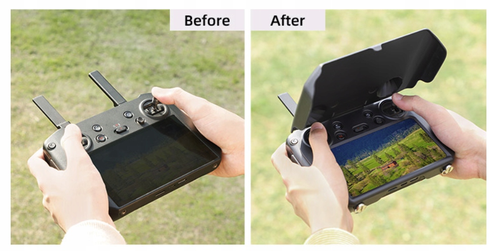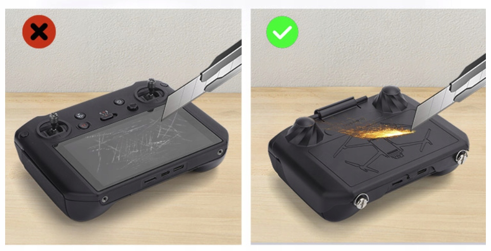 Teraz możesz mieć pewność, że DJI RC PRO jest zabezpieczony przed uszkodzeniem. Produkt chroni ekran kontrolera przed zarysowaniem lub pęknięciem. Zasłania też przyciski funkcyjne, dzięki czemu unikniesz przypadkowego uruchomienia urządzenia.