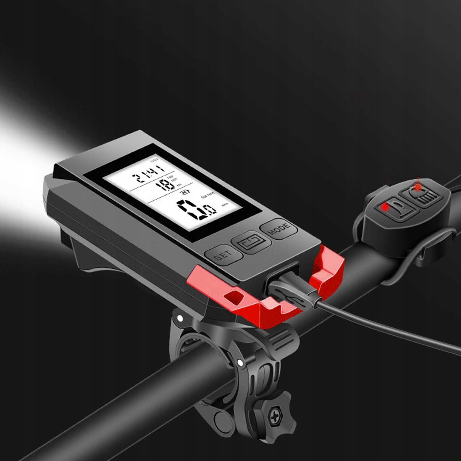 Wyświetlacz LCD z przednim światłem roweru i komputerem rowerowym w kolorze czerwonym