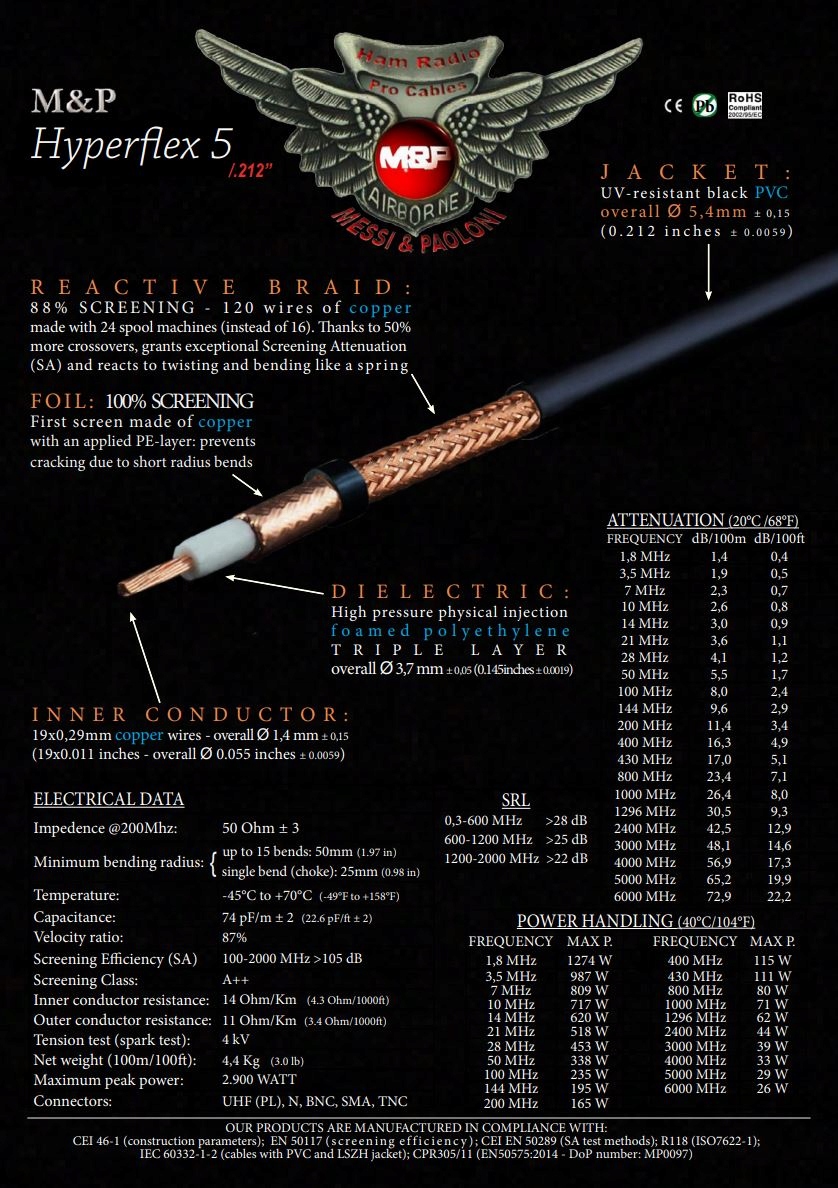 Спецификация коаксиальный 50 ом / - 3 ОмТехнический паспорт HyperFlex 5: