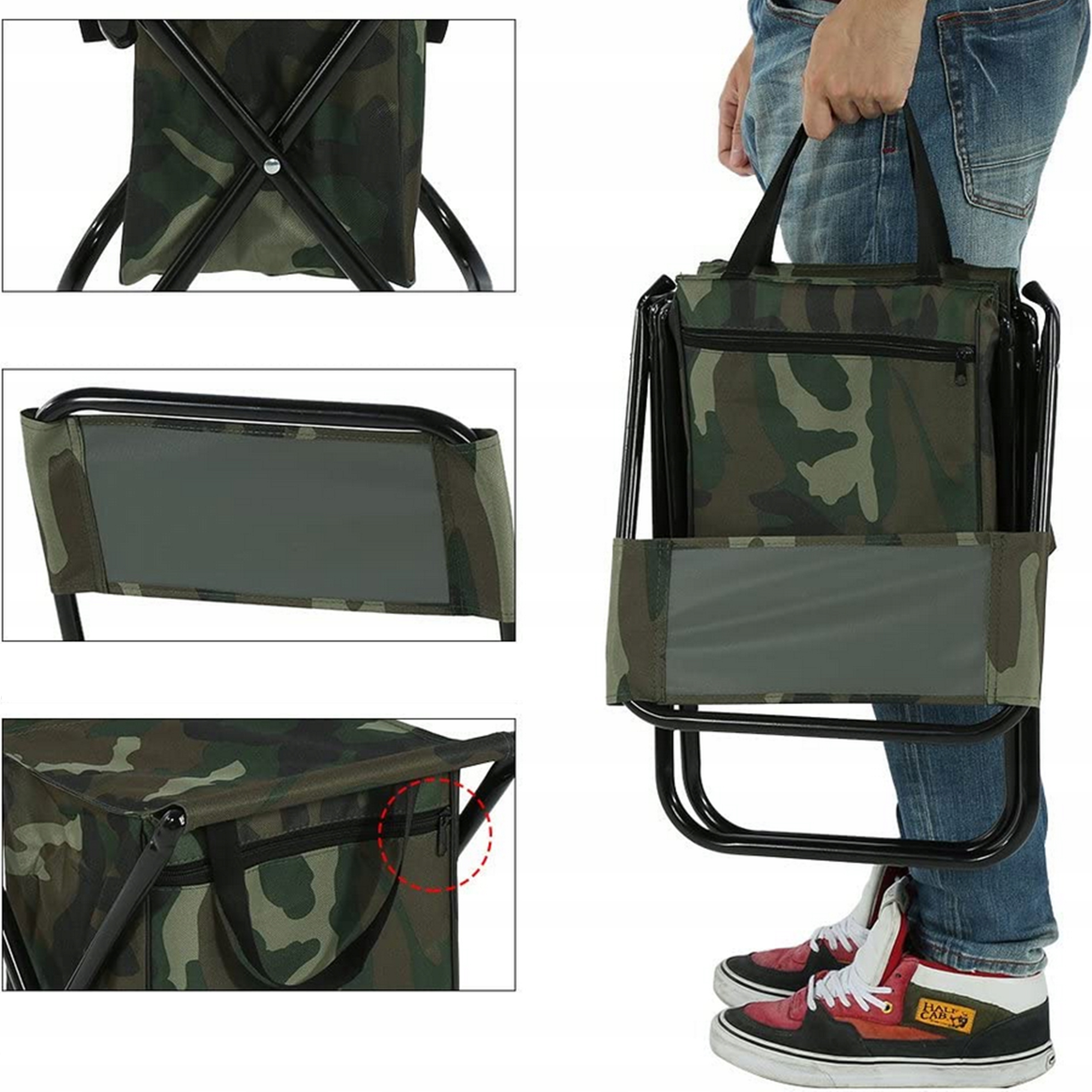 To wielofunkcyjne krzesło nie tylko zapewnia wygodę, ale także oferuje praktyczne rozwiązania, które uczynią każdą wyprawę jeszcze przyjemniejszą. Wyposażone w zamykany na zamek błyskawiczny pojemny schowek oraz uchwyt do przenoszenia.