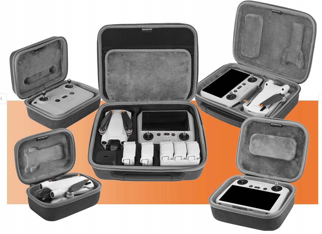 Wygodne i bezpieczne przechowywanie drona. Nie ma potrzeby odpinania śmigieł aby umieścić drona w etui Drona można umieścić w etui z nałożoną osłoną gimbala.