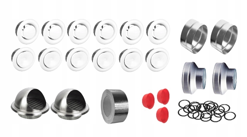 Zestaw elementów rekuperacji mechanicznej do samodzielnego montażu.