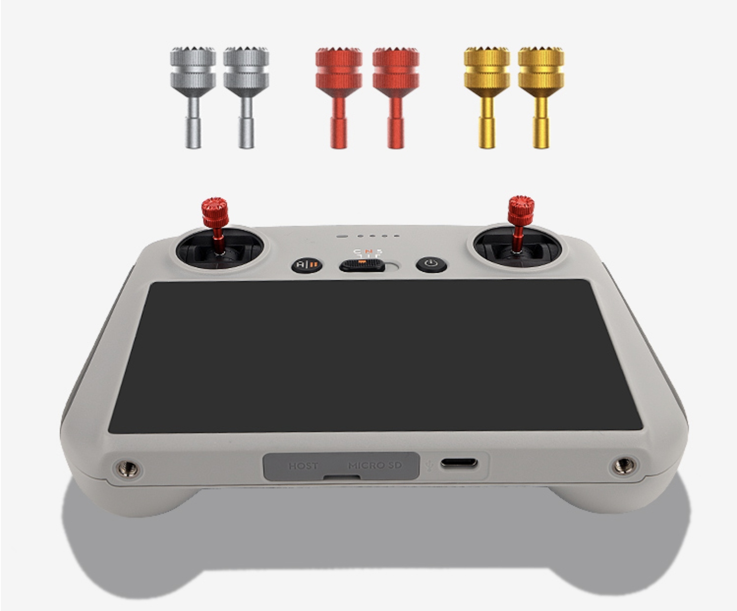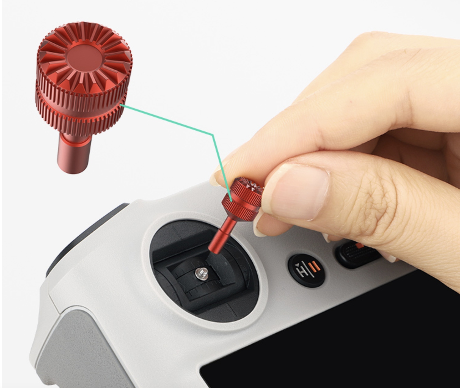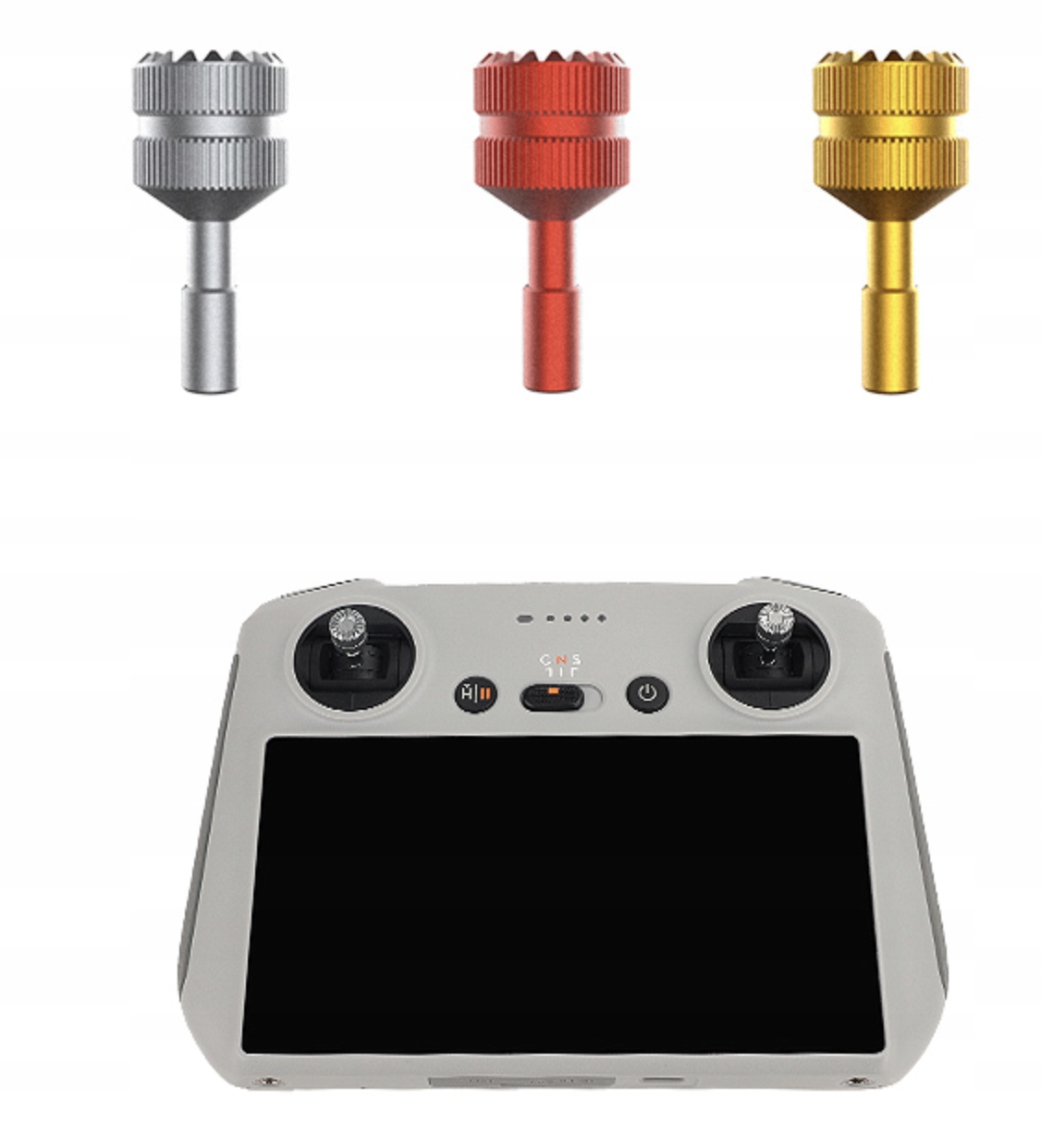 Drążki zaprojektowane do DJI Mini 3 Pro / DJI RC można wykręcić z aparatury i przechowywać w dedykowanym wyżłobieniu po rozłożeniu uchwytów na urządzenie mobilne, dzięki czemu aparaturę można wygodnie przechowywać i transportować.