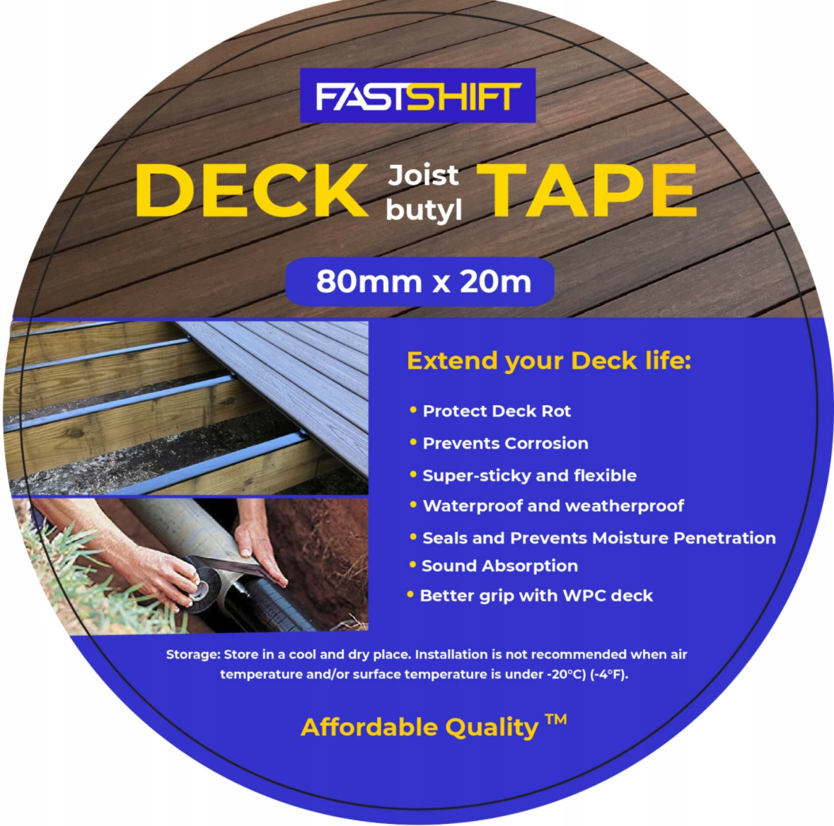 Taśma Tworzy wodoodporną barierę, jest odporna na warunki atmosferyczne na zewnątrz. Dobrze łączy się z metalami, aluminium, drewnem, plastikiem i szkłem. Po ostatecznym przyklejeniu może wytrzymać temperatury od -30 ° C do 80 ° C, dzięki czemu twój taras pozostanie chroniony o każdej porze roku.
