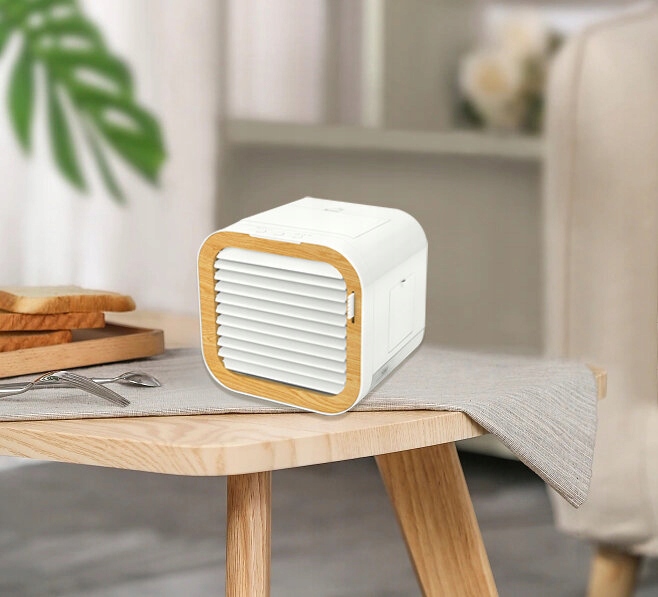 Mały i lekki przenośny klimator VOLTENO VO2916 w kolorze białym o mocy 3.5 W. Klimator VOLTENO VO2916 posiada zbiornik na wodę o pojemności 0.3 litra oraz 3 prędkości wentylatora (2000, 2700 i 3400). Przepływ powietrza w zależności od ustawionej prędkości wynosi 1.4 m/s, 2 m/s i 2.5 m/s. Wydajność klimator to 60 ml/h. Urządzenie VO2916 wyposażone jest w funkcję Timer dzięki czemu mamy możliwość ustawić żądany czas pracy.